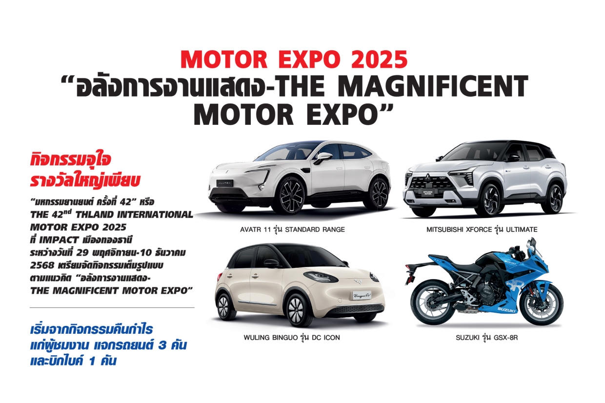 “มหกรรมยานยนต์ ครั้งที่ 42” หรือ THE 42nd THAILAND INTERNATIONAL MOTOR EXPO 2025 ที่ IMPACT เมืองทองธานี ระหว่างวันที่ 28 พฤศจิกายน-10 ธันวาคม 2568 เตรียมจัดกิจกรรมเต็มรูปแบบ ตามแนวคิด “อลังการงานแสดง-THE MAGNIFICENT MOTOR EXPO”