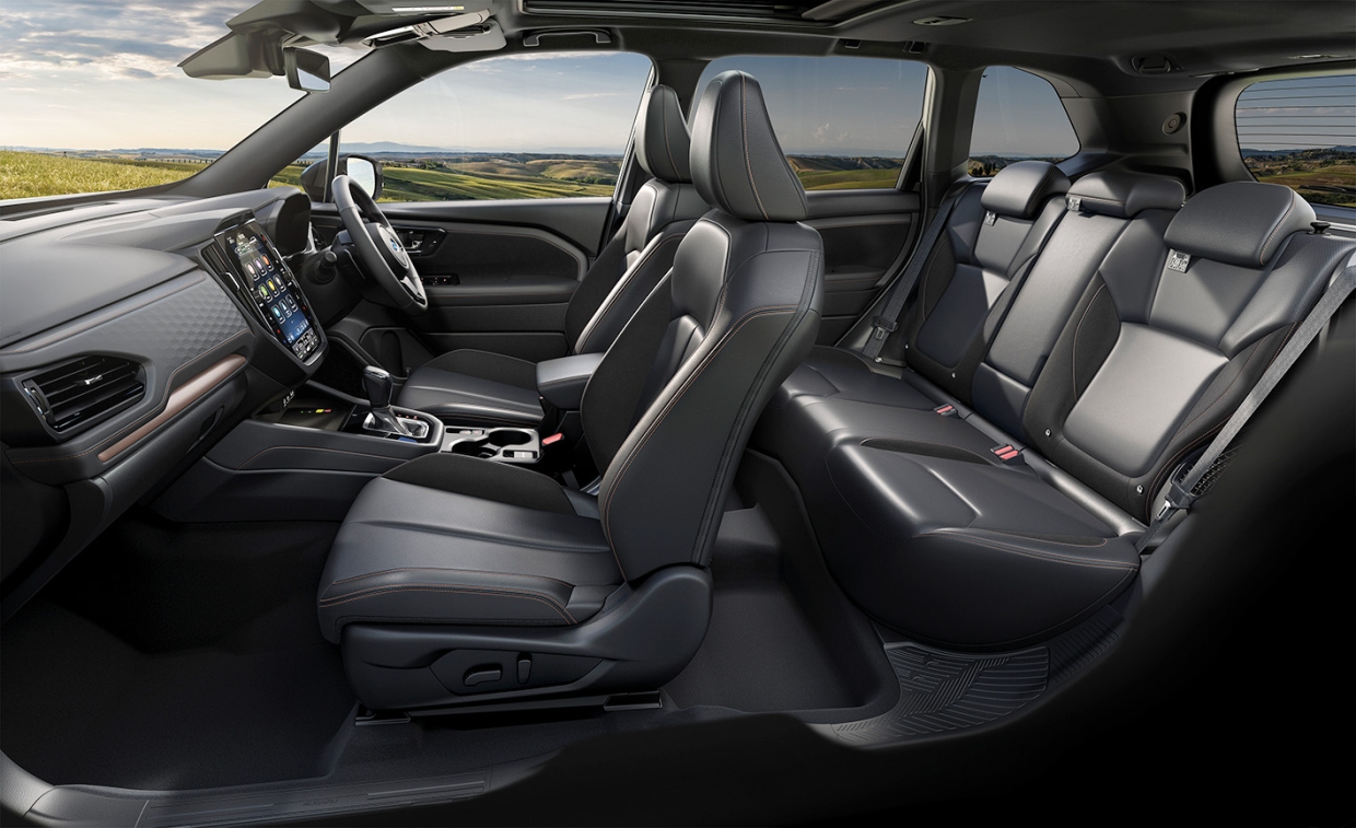 ห้องโดยสารดีไซจ์นโมเดิร์นแบบมีนีมอลของญี่ปุ่น เบาะนั่งพัฒนาโดยความร่วมมือระหว่าง SUBARU และศูนย์การแพทย์ในญี่ปุ่น เบาะผู้ขับยังปรับไฟฟ้า 10 ทิศทาง พร้อมระบบดันหลัง