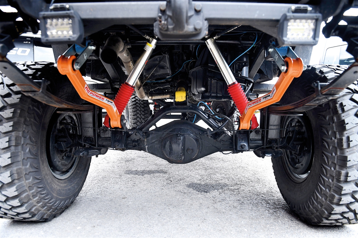 ตัวรถผ่านการยกให้สูงเป็นพิเศษกว่ารถที่ใช้งานทั่วไป ทั้งเสริมเติมแต่งด้วยชุดรองแหนบ ชุดหูยึด ชอคอัพกันสบัด เพื่อให้พร้อมลุย
