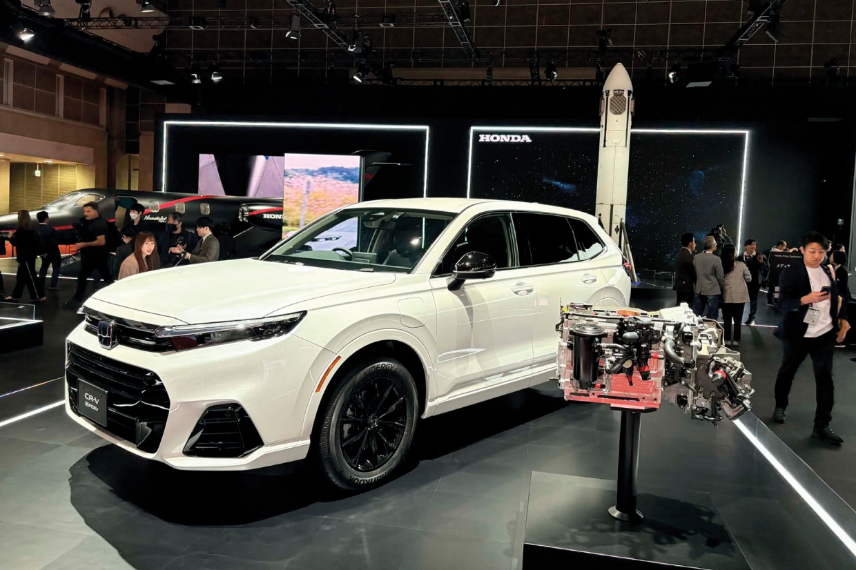 รถเด่นอีกรุ่น คือ HONDA CR-V E:FCEV (ฮอนดา ซีอาร์-วี อี:เอฟซีอีวี) เป็นรถยนต์คันแรกของค่ายที่ได้ใช้ขุมพลัง HONDA FUEL CELL MODULE แบบใหม่ล่าสุด ขับเคลื่อนล้อหน้าด้วยมอเตอร์ไฟฟ้า ให้กำลัง 174 แรงม้า แบทเตอรีความจุ 17.7 กิโลวัตต์ชั่วโมง รองรับการชาร์จ PLUG-IN LEVEL II วิ่งไฟฟ้าไกลสุด 47 กม. หากเติมไฮโดรเจนเต็มถังขนาด 4.3 กก. จะขับขี่ได้ถึง 435 กม.