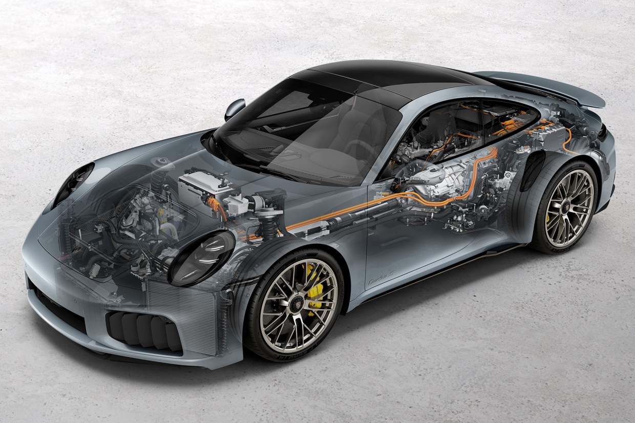 เป็นระบบขับไฮบริดชนิดไม่ต้องเสียบปลั๊กเพื่อชาร์จไฟแบทเตอรี ซึ่งใช้เครื่องยนต์ที่มีขนาดเล็กกว่าเดิม คือ เครื่องยนต์ไบเทอร์โบเบนซินฉีดเชื้อเพลิงโดยตรง 6 สูบนอนยัน (บอกเซอร์) 24 วาล์ว 3,591 ซีซี 471 กิโลวัตต์/640 แรงม้า ทำงานร่วมกันกับมอเตอร์ไฟฟ้าขนาด 52 กิโลวัตต์/71 แรงม้า แบทเตอรีขนาดความจุ 1.9 กิโลวัตต์ชั่วโมง และระบบเกียร์อัตโนมัติคลัทช์คู่ 8 จังหวะ PDK ได้กำลังรวมสูงสุด 523 กิโลวัตต์/711 แรงม้า คือ สูงกว่ารถรุ่นเดิม 45 กิโลวัตต์/61 แรงม้า หรือเท่ากับเพิ่มขึ้นถึงร้อยละ 9.4
