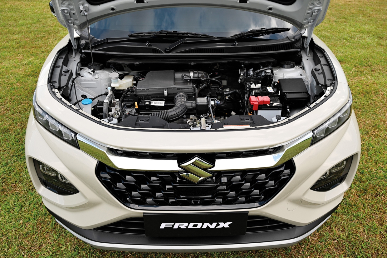 ในส่วนของการขับขี่ สิ่งที่ต้องพูดถึง และชมเชยก่อนเลย คือ ช่วงล่าง ที่เขาปรับแต่งมาได้นุ่ม แน่น หนึบ ขับสบายในทางสั้น หรือขับระยะทางยาว ตัวรถควบคุมได้ง่ายในการเปลี่ยนเลน และการหักหลบฉุกเฉินก็มั่นใจได้ เป็นรถที่ไว้ใจได้ในการขับขี่คันหนึ่งเลย ผ่านไปสักพักเราได้เข้าทางทุรกันดารที่เป็นพื้นที่ต่างจังหวัดในเขตของวังเวียง แต่ไม่ต้องห่วงเพราะ SUZUKI FRONX เขามีระยะความสูงจากพื้นถึงท้องรถ (GROUND CLEARANCE) อยู่ที่ 170 มม. ถนนที่มีพื้นผิวขรุขระ ทางฝุ่น หรือทางกึ่งออฟโรด เราก็ผ่านได้หายห่วง แต่สิ่งที่สัมผัสได้ตามมา คือ “ความสะเทือนสะท้าน” ที่ขึ้นมาถึงมือ พวงมาลัยที่ค่อนข้างสั่นตามพื้นผิวของถนน แต่พวงมาลัยมีความเบา ยังคงควบคุมได้ง่าย