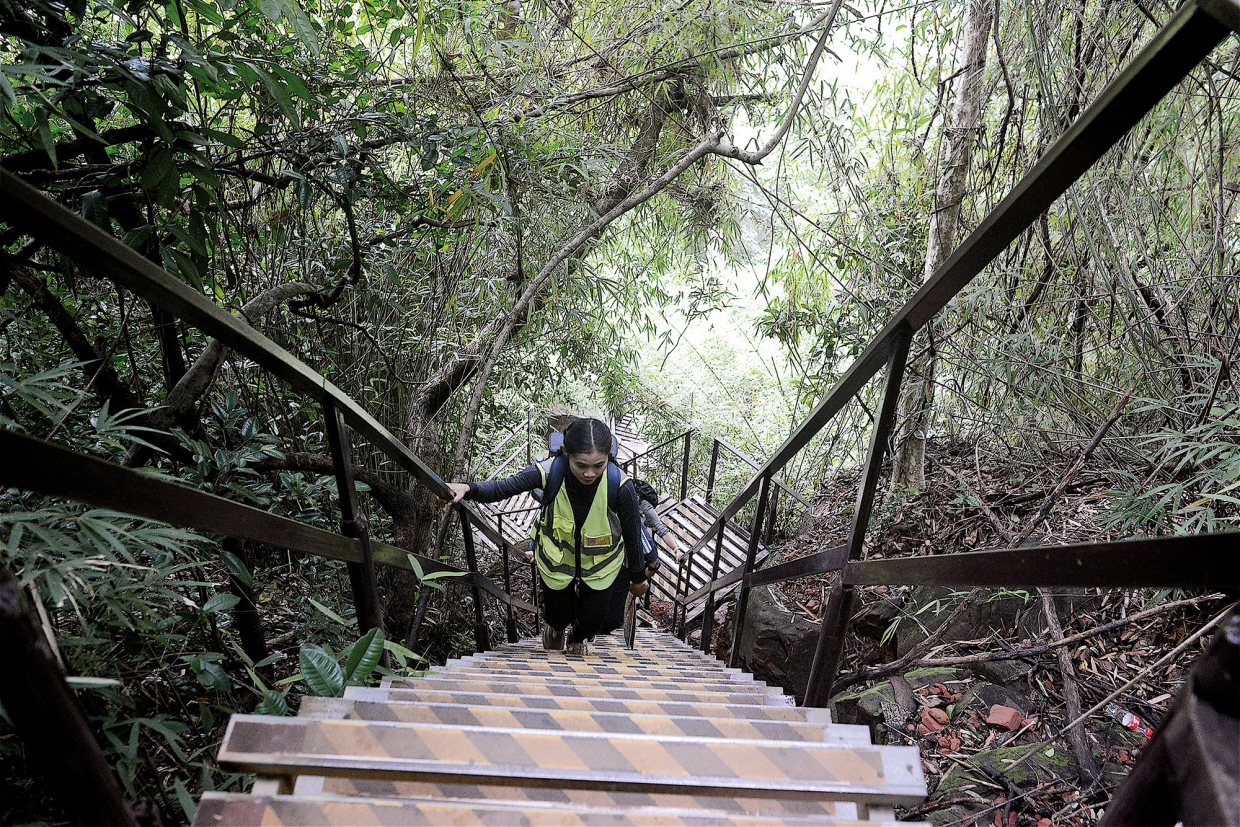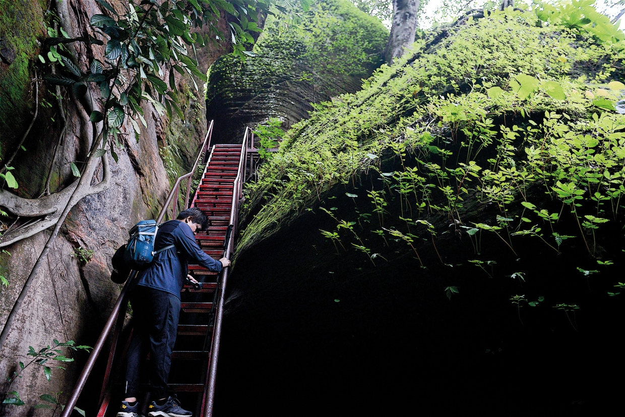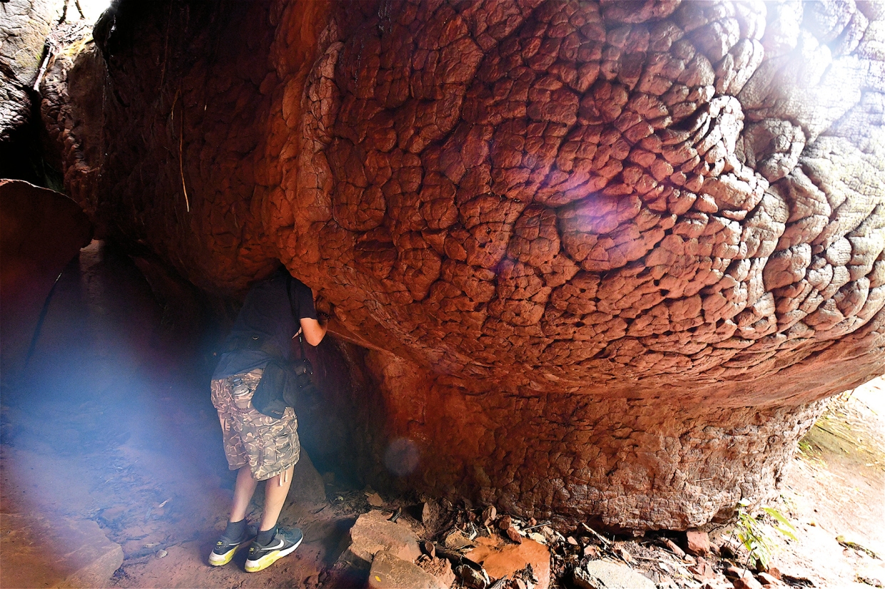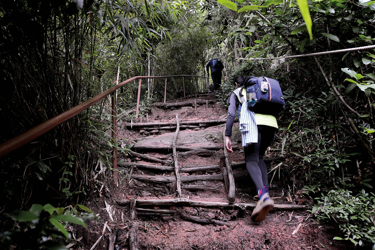“ชีวิตอิสระ” ได้เดินทางไปด้วยตัวเองพบว่า การเดินทางระยะแรก เป็นช่วงที่ “โหดที่สุด” ใครที่ท้อ หรือถอดใจตั้งแต่ช่วงนี้ จะไม่สามารถขึ้นไปถึงถ้ำนาคาได้ ไกด์บอกว่าช่วงวัดใจจะเริ่มตั้งแต่จุด A ไปถึงจุด E โดยจะเป็นทางขึ้นบันไดชัน ที่มีแต่ชันขึ้นเรื่อยๆ สลับกับการปีนโขดหินบ้าง ผมพยายามเดินเรื่อยๆ แบบไม่ใจร้อน ถ้าเหนื่อยก็หยุดพักถ่ายรูป ชมหินรูปร่างแปลกตาไปเรื่อย ก็อาจบรรเทาความเหนื่อยไปได้บ้าง เราใช้เวลาเกือบ 1 ชั่วโมง ไกด์สาวก็พูดด้วยเสียงที่ดุดันว่า ตอนนี้เราได้ผ่านจุด E ที่โหดที่สุดมาแล้ว จากนี้ก็เดินต่อได้สบาย ผมนี่ดีใจน้ำตาจะไหล ที่ผ่านมา คือ บันไดสูงชันเกือบ 90 องศา โดยเฉพาะบันไดแดงในตำนาน (เป็นจุดที่ชันที่สุด) เรารอดแล้ว !