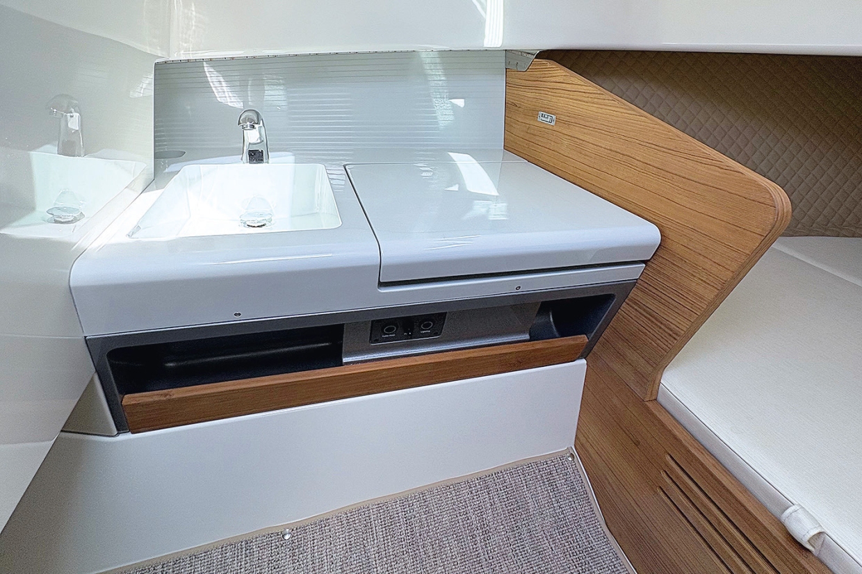 แม้จะไม่มีหน้าต่างกราบเรือ แต่มีช่องหน้าต่างทรงยาว 2 บานที่ขอบหน้าคอนโซล ช่วยนำแสงธรรมชาติเข้ามาภายใน เมื่อผสานกับการตกแต่งที่เรียบ และโมเดิร์น ทำให้ห้องโดยสารดูสว่าง และน่าอยู่กว่าที่คาด แน่นอนว่าด้วยความจุน้ำจืด 45 ลิตร และถังเก็บของเสีย 32 ลิตร ระบบต่างๆ จึงเหมาะกับการใช้งานระยะสั้นเป็นหลัก เหมาะสำหรับการพักผ่อนช่วงสุดสัปดาห์สั้นๆ