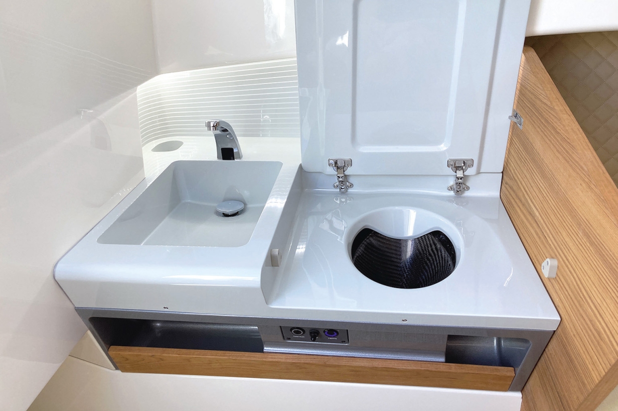 ห้องน้ำคาร์บอนไฟเบอร์แบบออพชัน ถูกออกแบบมาเพื่อความทนทานต่อแรงกระแทกจากคลื่น พร้อมทั้งช่วยลดน้ำหนักโดยรวม