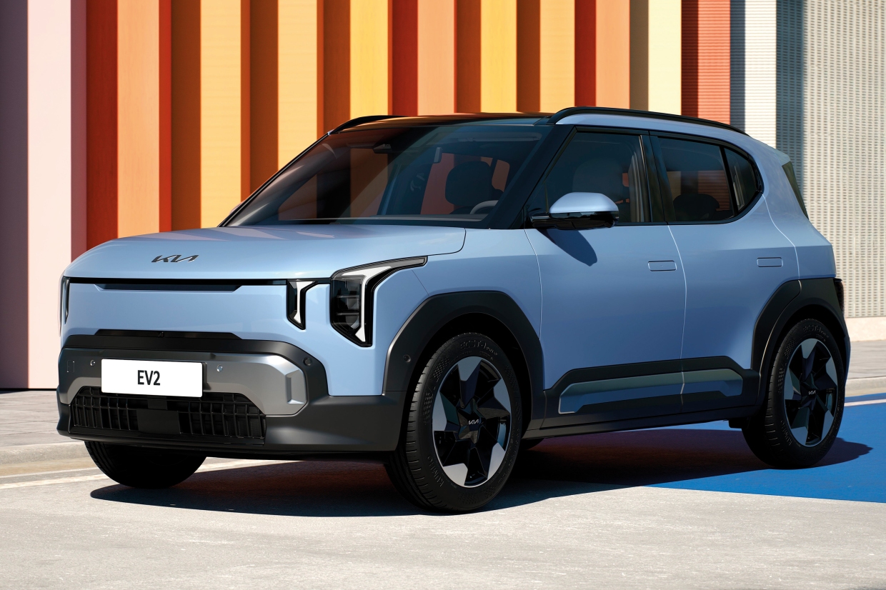 KIA EV2 (เกีย อีวี 2) รุ่นปี 2027 เป็นรถเอสยูวีไฟฟ้าขนาดเล็ก วางเป้าหมายเพื่อเจาะตลาดสังคมคนเมืองเป็นหลัก รถรุ่นนี้พัฒนาบนพแลทฟอร์ม อีวีรุ่นใหม่ของ KIA ดีไซจ์นทรงกล่องสมัยใหม่ หน้าสั้น ภายในเน้นความเรียบง่ายแบบยุคดิจิทอล คาดว่าวิ่งได้ราว 400 กม./การชาร์จ 1 ครั้ง ตัวรถรองรับระบบชาร์จเร็วแบบ DC เตรียมทำตลาดยุโรปเป็นหลัก ส่วนราคาค่าตัวยังไม่มีการเปิดเผย