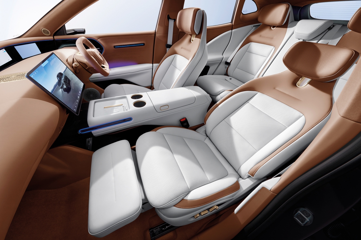 ภัทรกิติ์ : ห้องโดยสารเน้นความเป็นรถอนาคตมาก มีฟีเจอร์ที่เกี่ยวกับกล้องกระจกข้างที่ต้องเพิ่มเงิน ออพชันนี้มีประโยชน์มากในการขับขี่ โดยเฉพาะยามค่ำคืน หน้าจอยาวแบบ 2 ชั้น ยาวจากซ้ายจรดขวา แต่หน้าจอกลางที่ใหญ่ทำให้เราต้องระวังการใช้งาน พวงมาลัยทรงแบบรถสปอร์ท เน้นให้ไม่บดบังทัศนียภาพ โดยรวมของการออกแบบภายในสวยงาม การวางเลย์เอาท์ รวมถึงการใช้วัสดุคุณภาพสูง และมีการใช้ลวดลาย เพิ่มความหรูหราได้ดี