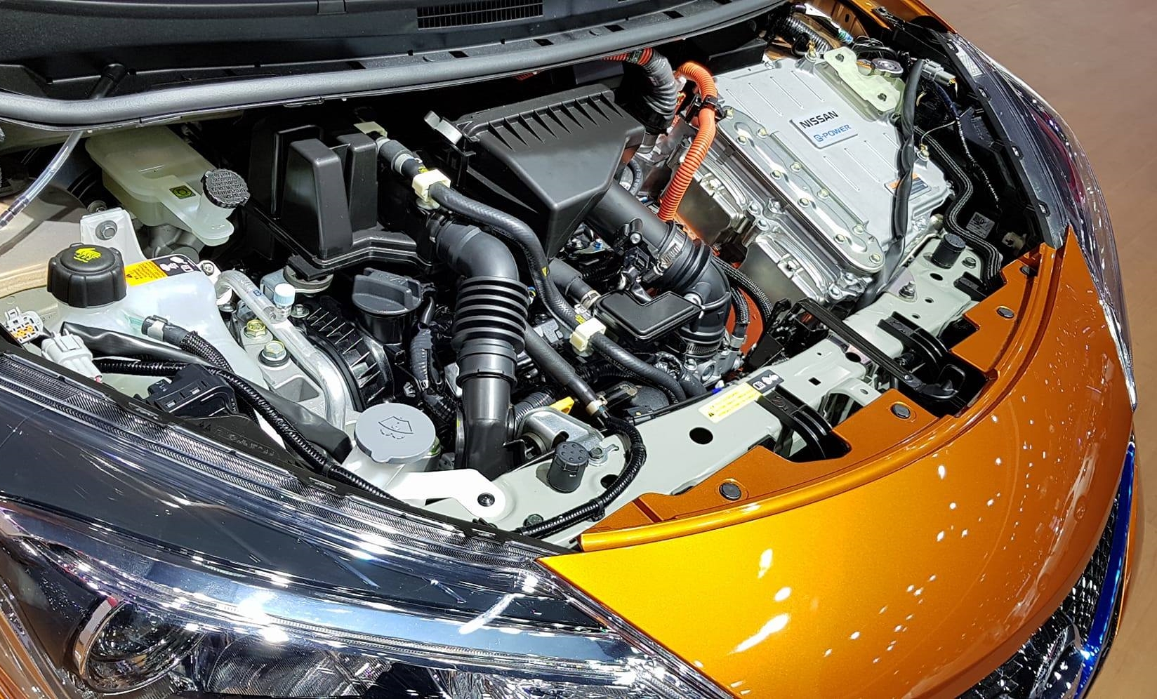 Note e-Power ใช้เทคโนโลยีการขับเคลื่อน และชุดแบทเตอรีที่มีขนาดกะทัดรัดที่ทาง Nissan คิดค้นขึ้นมา มีใช้งานในรถยนต์พลังงานไฟฟ้าเต็มตัวอย่าง Leaf รวมถึงรุ่นล่าสุดที่มาจัดแสดงในบูธงาน Motor Expo 2017 เช่นกัน ชุดแบทเตอรีของ Note e-Power จะติดตั้งบริเวณข้างใต้เบาะคู่หน้า มอเตอร์ไฟฟ้าขับเคลื่อนล้อคู่หน้า ส่วนเครื่องยนต์สันดาปที่ทำหน้าที่ชาร์จกระแสไฟฟ้า แบบเบนซิน ขนาด 1.2 ลิตร ระบบไฮบริดของ Note e-Power มีกำลังทั้งระบบที่ 109 แรงม้า แรงบิดสูงสุด 25.9 กก.-ม.