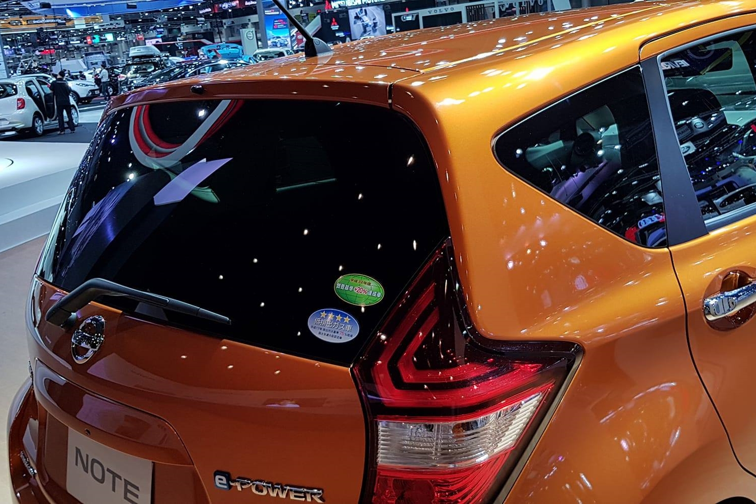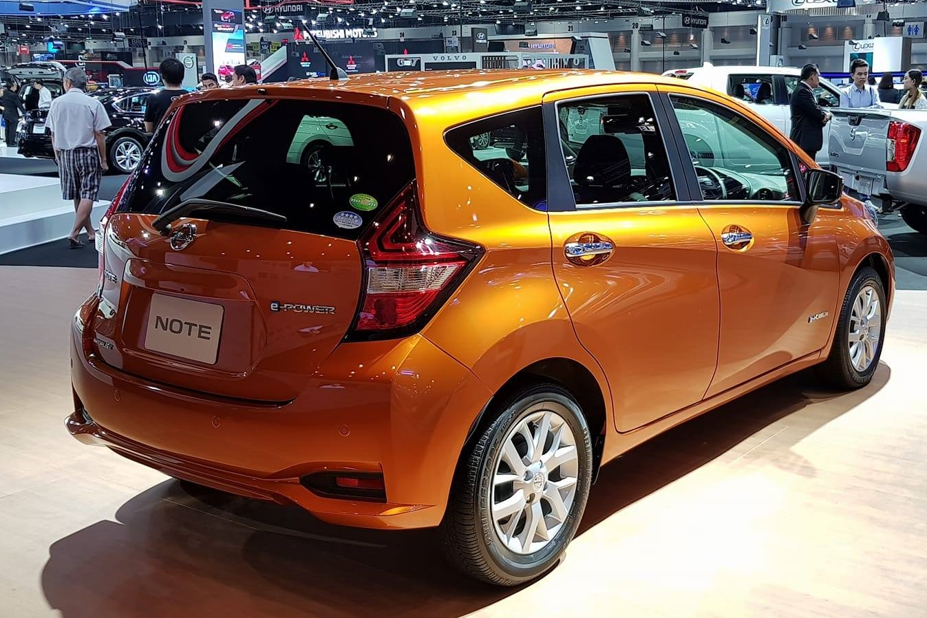 หากดูจากภายนอก Nissan Note e-Power มีความใกล้เคียงกับรุ่นปกติพอสมควร (รุ่นที่แสดงอยู่ในบูธนำเข้าจากประเทศญี่ปุ่น) แฮทช์แบคทรงโฉบเฉี่ยว ขนาดตัวเทียบเท่ารถยนต์ระดับ บี เซฏเมนท์ (เช่น Honda Jazz เป็นต้น) ล้อแมกขนาด 15 นิ้ว ยางขนาด 185/65 R15 ไม่มีสปอยเลอร์หลัง ดูผ่านๆ อาจแทบแยกกันไม่ออก มีจุดสังเกตเพียงตราสัญลักษณ์ e-Power ด้านข้าง และส่วนท้ายของตัวถัง