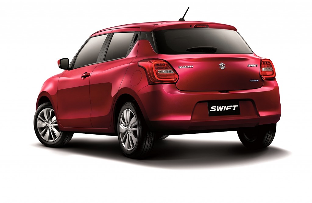 รูปทรงของ Suzuki Swift รุ่นล่าสุด ออกแบบเส้นสายให้มีความทันสมัยยิ่งขึ้น โฉบเฉี่ยวในสไตล์ที่คล้ายรถคูเป เห็นได้จากมือเปิดของประตูบานหลังติดตั้งบนเสา ซี เส้นข้างมีความพริ้วไหวกว่ารุ่นก่อนหน้า ไฟหน้าทรงเรียวแบบพโรเจกเตอร์ (รุ่น GLX ขึ้นไป) ไฟท้ายดูมีสันเหลี่ยมดุดัน ขณะที่มิติตัวถังไม่ต่างจากรุ่นก่อนหน้ามากนัก ความยาว 3,840 มม. กว้าง 1,735 มม. (กว้างกว่ารุ่นก่อนหน้า 40 มม.) สูง 1,495 มม. และระยะฐานล้อ 2,450 มม. ล้อขนาด 15-16 นิ้ว (รุ่น GLX ขึ้นไปเป็นล้อแมกขนาด 16 นิ้ว)