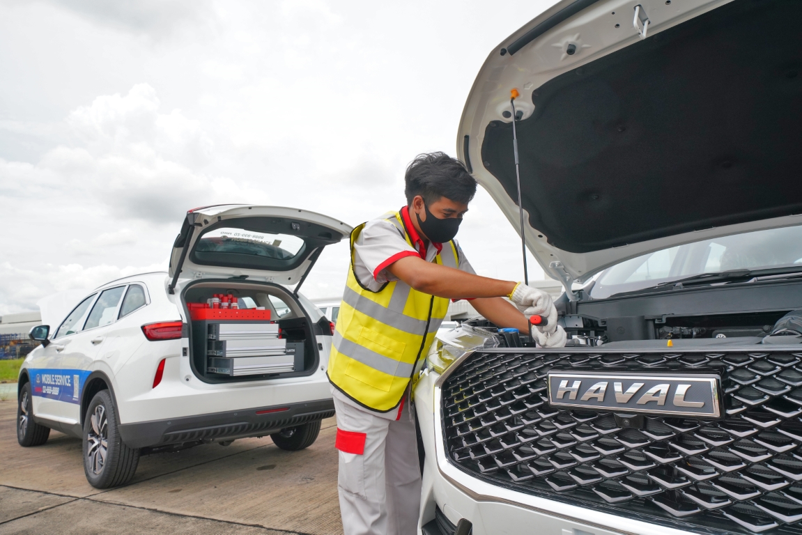 สำหรับรถ GWM Mobile Service นั้น Great Wall Motor ได้นำรถยนต์ All New Haval H6 Hybrid SUV สีขาว มาติดตั้งเทคโน โลยี และอุปกรณ์สำหรับการตรวจเชคระยะอย่างครบครัน ซึ่งแต่ละคันจะมีช่างผู้ชำนาญการจาก Great Wall Motor จำนวน 2 คน คอยให้บริการ โดยลูกค้าสามารถนัดหมายล่วงหน้าอย่างน้อย 2 วันทำการ ผ่าน GWM Application หรือ GWM Call Center : 0-2668-8888 หรือติดต่อผ่าน GWM Partner Store ได้ทุกสาขา
