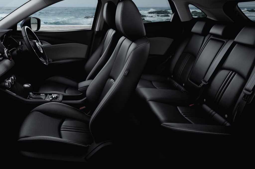 สำหรับภายในห้องโดยสารก็ยังคงโดดเด่นด้วยความประณีตพิถีพิถันใส่ใจในทุกรายละเอียด คัดสรรเลือกใช้เฉพาะวัสดุเกรดพรีเมียมในทุกจุดสัมผัส พร้อมเพิ่มความโดดเด่นด้วยคอนโซลหน้าแบบ Grand Luxe Suede สีเทา ที่ผสานอย่างลงตัวกับเบาะหนังสีดำตัดด้วยด้ายสีเทา พร้อมกับอุปกรณ์ชาร์จไฟแบบไร้สาย Wireless Charger กับเทคโนโลยีเชื่อมต่อ และใช้งานผ่านแอพพลิเคชันบนสมาร์ทโฟน ด้วยระบบ Mazda Connect ที่มาพร้อม Wireless Apple CarPlay และรองรับ Android Auto โดยแสดงข้อมูลผ่านหน้าจอสี Center Display แบบทัชสกรีน ขนาด 7 นิ้ว ควบคุมด้วยปุ่มควบคุมอัจฉริยะ Center Commander รุ่นย่อยทั้ง 3 รุ่น