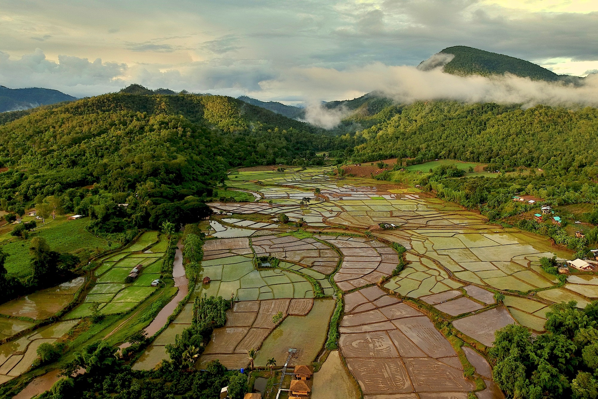 ฤดูที่เรามาเป็นฤดูฝน ดังนั้นไม่ว่ามองไปทางไหน ก็จะเห็นชาวบ้านช่วยกันปลูกข้าว ดำนา โดยใช้วิธีเพาะต้นกล้า แล้วนำมาปักดำ ไม่ได้ใช้วิธีหว่านเมล็ดแบบภาคกลางที่เราคุ้นเคย ดังนั้น เวลาข้าวเริ่มโต จะเห็นต้นข้าวเรียงกันเป็นแนวสวยงาม และด้วยภูมิประเทศเป็นแบบที่ราบสูง การทำนาจึงต้องแบ่งเป็นแปลงๆ แบบขั้นบันได ทำให้ยิ่งสวยงามขึ้นไปอีก