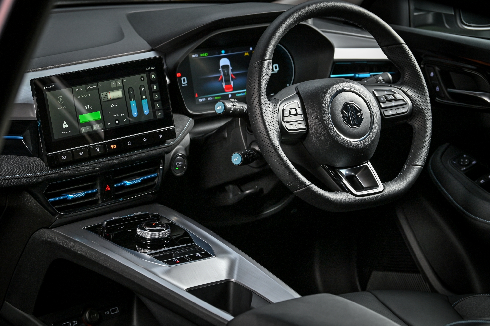 เราสลับคันมาเป็นสเตชันแวกอน MG ES (ราคา 959,000 บาท) รูปทรงโดยรวมยังชวนให้นึกถึง รุ่น EP แต่เมื่อดูในรายละเอียดแล้ว ES ถูกปรับปรุงรอบด้าน ไม่ว่าจะเป็นมอเตอร์ไฟฟ้ามีพละกำลังเพิ่มขึ้น (เป็น 177 แรงม้า) แบทเตอรีมีความจุมากขึ้น (เป็น 51.0 กิโลวัตต์ชั่วโมง) และยังเป็นแบทเตอรีเจเนอเรชันที่ 2 สามารถรองรับการจ่ายกระแสไฟฟ้าสู่ภายนอก (ระบบ V2L) ส่วนคอนโซลหน้ามีการปรับเปลี่ยนหน้าจอให้มีความทันสมัยยิ่งขึ้น แผงหน้าปัดแบบดิจิทอล ขณะที่ปุ่มใช้งานบางส่วนยังคงมีไว้เหมือนเดิม มีข้อดี คือ ใช้งานได้สะดวกมากกว่าการใช้งานผ่านหน้าจอ (เช่น การปรับโหมดการขับขี่ และระดับการหน่วงมอเตอร์ไฟฟ้าของระบบ KERS) ขณะที่สมรรถนะโดยรวมมีอัตราเร่งที่ทันใจ เร่งแซงได้สบาย การเข้าโค้งทำได้ดี จากระบบรองรับที่ให้ความรู้สึกหนึบนุ่ม และตัวถังแบบสเตชันแวกอนที่ขับขี่ได้ดีใกล้เคียงกับรถเก๋ง อย่างไรก็ตาม ระยะทำการสูงสุดเมื่อชาร์จแบทเตอรีเต็ม คือ 412 กม. (มาตรฐาน NEDC ตามที่ผู้ผลิตระบุมา) การใช้งานจริงน่าจะอยู่ที่ 300 กม. ปลายๆ ถือว่าไม่มากนัก แม้จะแล่นได้ไกลกว่ารุ่น EP พอสมควร จุดเด่นยังเป็นเรื่องความอเนกประสงค์ และอรรถประโยชน์ที่เหลือเฟือ จากพื้นที่เก็บสัมภาระท้ายที่มากมาย รองรับการใช้งานกลางแจ้งด้วยการติดตั้งรางหลังคามาในตัว
