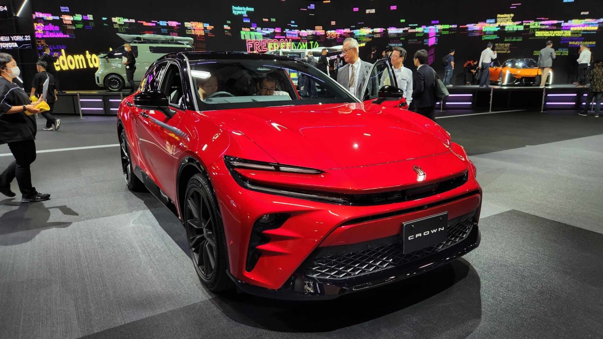 บริเวณด้านข้างยังมี Toyota Crown Sports ซึ่งนับเป็นครั้งแรกที่มีการผลิตรุ่นย่อยของ Crown ในสไตล์ SUV ใช้โครงสร้างพื้นฐาน TNGA-K ที่มาพร้อมไฟหน้า LED 3 ดวง และ Bi-Beam LED กระจังหน้าขอบสีเดียวกับตัวรถ คิ้วชายล่างกันชนหน้าสีดำ ด้านท้ายติดตั้งไฟท้าย LED เส้นเดียวแนวยาว ที่มีทั้งไฟท้าย ไฟเบรค ไฟเลี้ยว และไฟถอยในโคมเดียวกัน