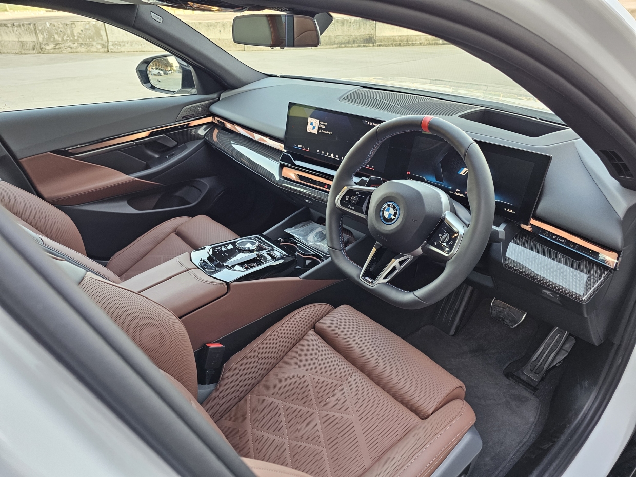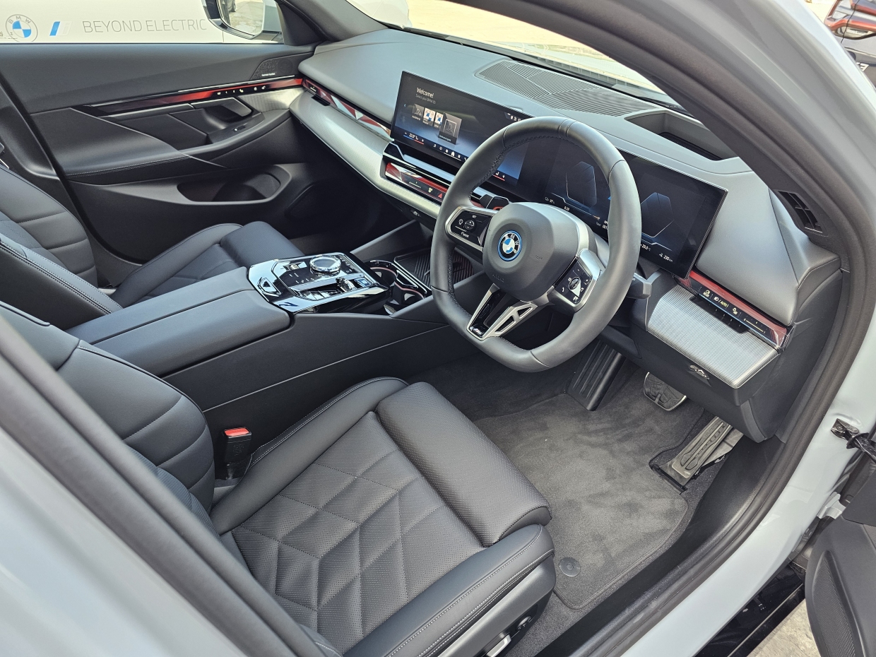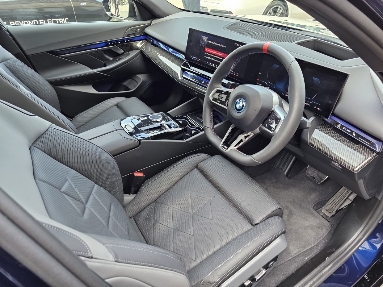 ภายในห้องโดยสารของ i5 ใหม่ มีความสปอร์ทในสไตล์ M เด่นชัด ด้วยพวงมาลัยหนังสไตล์ M ตกแต่งด้วย CraftedClarity ที่ทำจากแก้วคริสตัล เบาะนั่งคู่หน้าแบบ Comfort พร้อมระบบปรับด้วยไฟฟ้า เสริมความหรูหราและสะดวกสบายด้วยระบบไฟส่องสว่างทั้งภายในและภายนอกห้องโดยสาร ม่านบังแดดสำหรับผู้โดยสารที่เบาะหลัง และชุดอุปกรณ์ Travel & Comfort