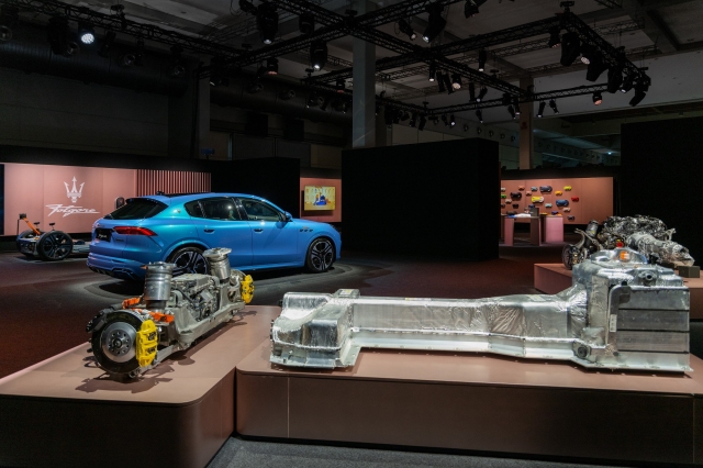 โซนการเดินทางด้วยยนตรกรรมไฟฟ้า จัดแสดง Maserati Grecale Folgore เอสยูวีไฟฟ้า 100 % เพื่อแสดงความล้ำสมัยของการติดตั้งระบบขับเคลื่อนด้วยไฟฟ้าเต็มรูปแบบ ติดตั้งแบทเตอรีกำลังสูงไว้ใต้ตัวถัง จึงไม่กระทบกับพื้นที่ใช้สอยในห้องโดยสาร ที่นับว่ากว้างที่สุดในรถยนต์กลุ่มเดียวกัน การจัดแสดงวอลล์ชาร์จของ Folgore ที่ดูหรูหรา รวมไปถึงการนำชุดเพลาขับหน้า-หลัง และแบทเตอรีแพคของ GranTurismo Folgore มาให้ได้ชมกันอย่างใกล้ชิด