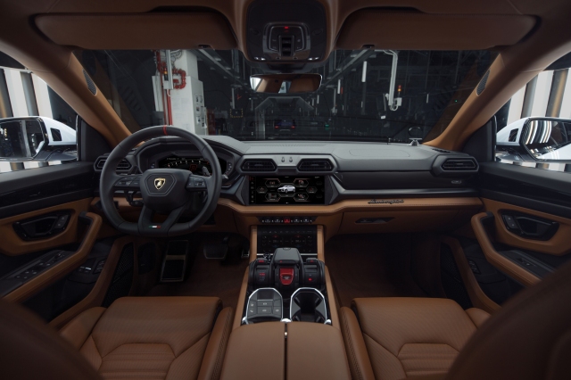 หน้าจอขนาดใหญ่ 12.3 นิ้ว ซึ่งใหญ่กว่ารุ่นเดิม ถูกติดตั้งไว้บริเวณกลางแผงหน้าปัด และมอบการแสดงผลกราฟิค Human Machine Interface (HMI) เวอร์ชันใหม่ที่ใช้งานได้ง่ายดาย และเป็นธรรมชาติมากขึ้น เหมือนที่พบได้ในรุ่น Revuelto ทีมนักออกแบบ Lamborghini Centro Stile ยังให้ความสำคัญกับการออกแบบท่อลม โดยตกแต่งด้วยวัสดุอลูมิเนียมเคลือบผิวในรูปทรงตัว “Y” อันเป็นเอกลักษณ์ และยังหุ้มส่วนบานตกแต่ง แผงหน้าปัด เบาะนั่งด้วยวัสดุใหม่ นอกจากนี้ ยังออกแบบแผงปุ่มกดแบบกลไกเพื่อให้ได้สัมผัสของการกดที่สมจริง