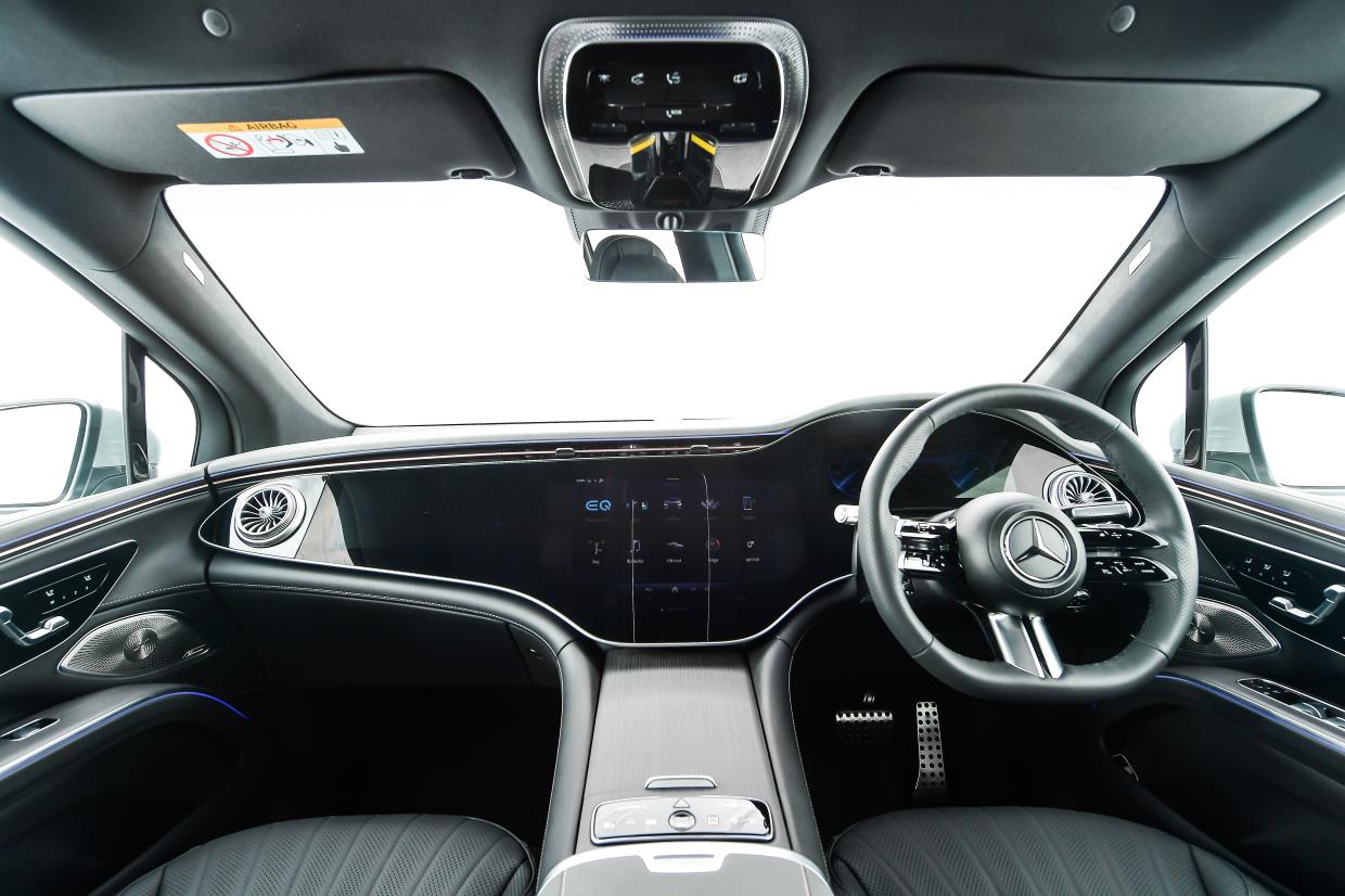 Mercedes-Benz EQS 450 4MATIC SUV AMG Dynamic (เมร์เซเดส-เบนซ์ อีคิวเอส 450 4 เมทิค เอสยูวี เอเอมจี ไดนามิค) เอสยูวีไฟฟ้าระดับ Top-End Luxury รองรับการโดยสารสูงสุด 7 ที่นั่ง ติดตั้งขุมพลังมอเตอร์ไฟฟ้าคู่ พร้อมระบบขับเคลื่อน 4 ล้อแบบ All-wheel drive ให้กำลังสูงสุด 360 แรงม้า แรงบิดสูงสุด 800 นิวทันเมตร/81.6 กก.-ม. อัตราเร่งจาก 0-100 กม./ชม. ในเวลา 6.1 วินาที ความเร็วสูงสุดได้ 210 กม./ชม. ความจุของแบทเตอรีขนาดใหญ่ถึง 118 กิโลวัตต์ชั่วโมง ทำให้รถยนต์คันนี้สามารถวิ่งได้ไกลสูงสุด 658 กม. (WLTP) ต่อการชาร์จเต็ม 1 ครั้ง โดยรองรับการชาร์จไฟฟ้ากระแสตรง (DC charge) สูงถึง 200 กิโลวัตต์ ใช้เวลาชาร์จเพียง 31 นาทีจาก 10-80% ส่วนการชาร์จแบบกระแสสลับ (AC Charge) รองรับสูงสุด 11 กิโลวัตต์ ใช้เวลาชาร์จจาก 0-100% ในระยะเวลา 12 ชม. 15 นาที