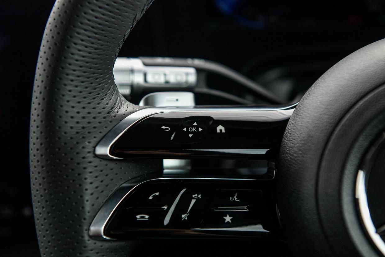 สำหรับระบบการเชื่อมต่อและ Infotainment ภายในรถ โดดเด่นด้วยระบบปฏิบัติการ MBUX7 รุ่นล่าสุด ผสานการทำงานของเทคโนโลยี AI พร้อมติดตั้งระบบจดจำโปรไฟล์ผู้ขับขี่ ด้วยการสแกนลายนิ้วมือ (Fingerprint scanner) และระบบจะปรับการตั้งค่าต่าง ๆ ในรถ ให้เป็นไปตามความต้องการของผู้ขับขี่ โดยติดตั้งหน้าจอแสดงผลบริเวณคอนโซลกลางแบบ OLED ขนาด 12.8 นิ้ว และหน้าจอแสดงผลข้อมูลการขับขี่แบบดิจิทอล 12.3 นิ้ว รองรับการเชื่อมต่อโทรศัพท์มือถือระบบปฏิบัติการ iOS และ Android (Apple Carplay™ & Android Auto™) ติดตั้งอุปกรณ์สื่อสารด้วยสัญญาณ 5G สำหรับบริการ Mercedes me connect ระบบแผนที่นำทางแบบ Hard-disc navigation พร้อมแผนที่แบบ 3 มิติ ระบบมัลติมีเดีย MBUX Entertainment Plus และระบบตรวจสอบสภาพการจราจรแบบ Live Traffic Information ในทุกเส้นทาง