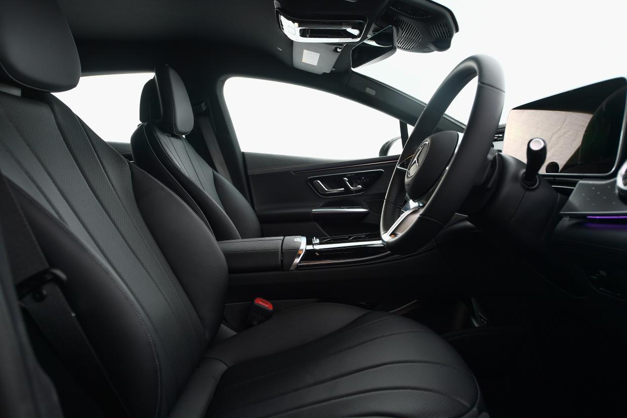 เมื่อเข้ามายังภายในห้องโดยสารจะพบกับการตกแต่งแบบ Electric Art Interior ตามหลักแนวคิด “Progressive Luxury” ที่แฝงอยู่ในทุกมิติของห้องโดยสาร โดยตกแต่งคอนโซลด้วยวัสดุ Laser-cut backlit trim ผสานเข้ากับดีไซจ์น Mercedes-Benz pattern และวัสดุแบบ High-gloss black ติดตั้งพวงมาลัยมัลทิฟังค์ชันแบบสปอร์ทหุ้มหนัง โดยใช้เบาะนั่งแบบ Comfort Seats พร้อมระบบดันหลัง 4 ทิศทาง Lumbar support และฟังค์ชันปรับระดับเบาะนั่งด้วยระบบไฟฟ้าพร้อม memory seat สำหรับผู้ขับขี่ และผู้โดยสารตอนหน้า รวมถึงฟังค์ชันอำนวยความสะดวกที่ช่วยสร้างประสบการณ์ที่ดีเยี่ยม อาทิ ระบบปรับรูปแบบการขับขี่ DYNAMIC SELECT ระบบควบคุมอุณหภูมิอัตโนมัติ THERMATIC แบบแยก 2 โซน ระบบชาร์จแบบไร้สาย (Wireless charging) และไฟเรืองแสง Ambient Light รอบห้องโดยสารที่สามารถปรับได้ถึง 64 เฉดสี โดยจะครอบคลุมในส่วนของโลโก Mercedes-Benz บริเวณแดชบอร์ดที่จะเปลี่ยนสีตาม Ambient Light ในตอนกลางคืน