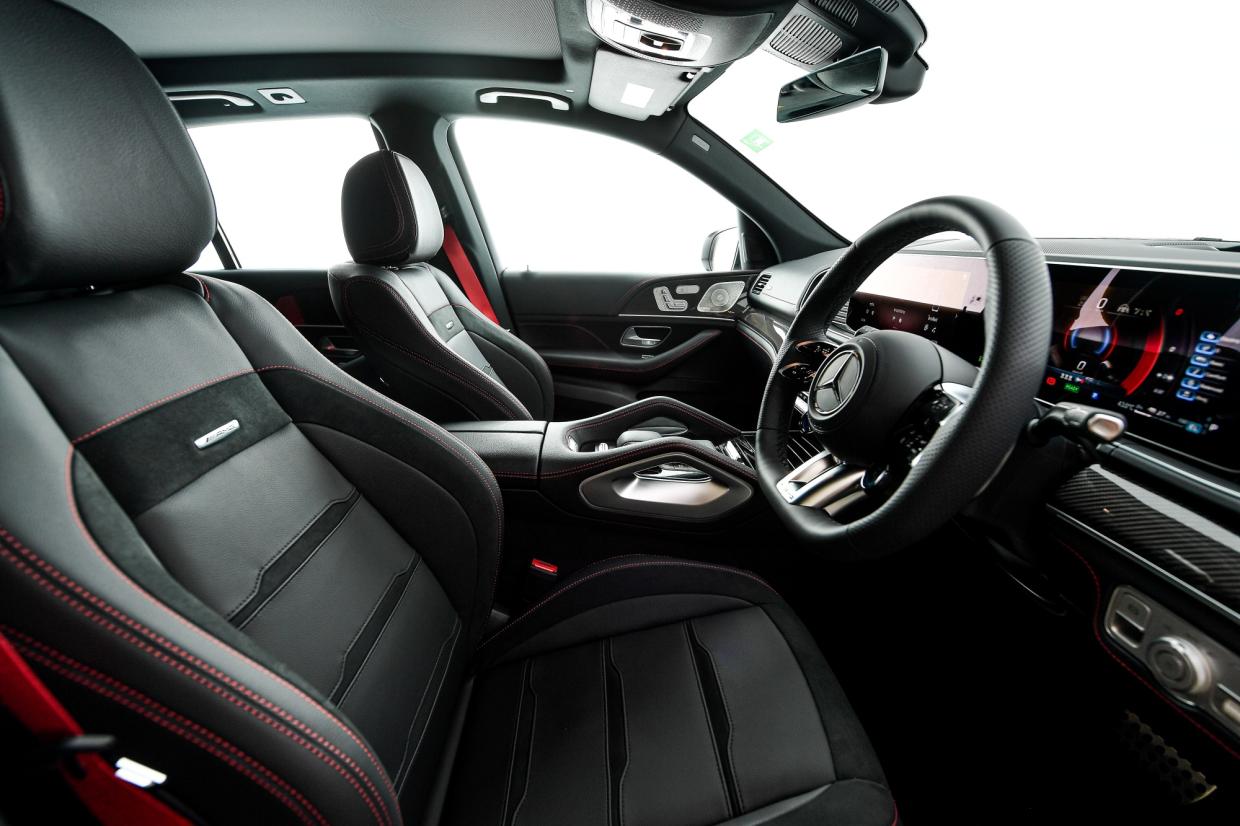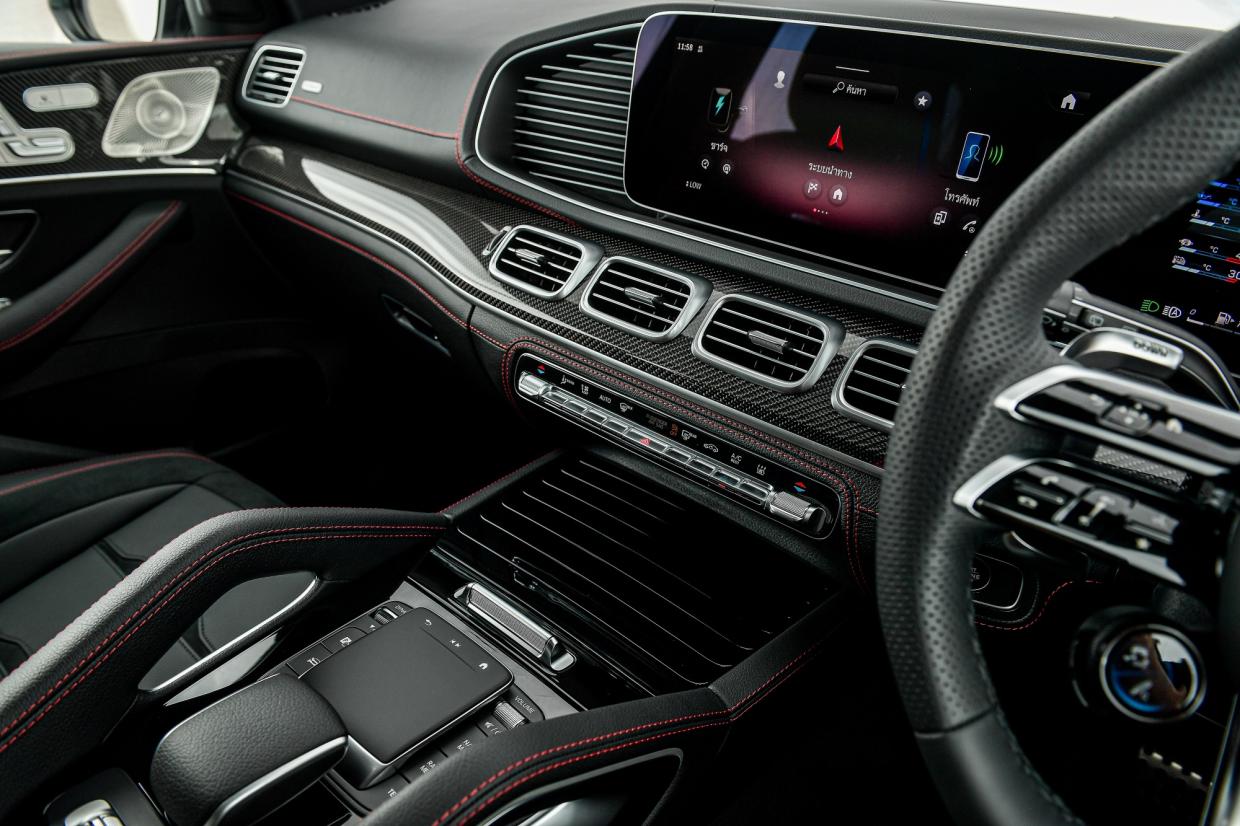 ภายในห้องโดยสารมาพร้อม AMG Interior Package มอบรายละเอียดการตกแต่งที่โดดเด่นตามสไตล์สปอร์ทในทุกองค์ประกอบ ไม่ว่าจะเป็น พวงมาลัย AMG Performance Steering Wheel พร้อมระบบพวงมาลัย AMG Steering 3 สเตจ ติดตั้งเบาะนั่งหุ้มด้วยหนัง และไมโครไฟเบอร์ หลังคากระจก Panoramic Sunroof ที่ช่วยเพิ่มความโปร่งสบายให้แก่ห้องโดยสาร มอบประสบการณ์การขับขี่ที่เหนือกว่าด้วยระบบปฏิบัติการ MBUX7 แบบ Zero-Layer Concept ที่ออกแบบมาตามรูปแบบโปรแกรม AMG ไม่ว่าจะเป็น หน้าจอธีมพิเศษของ AMG รวมถึงการวัดทแรคสนาม โดยควบ คุมผ่านจอกลางแบบ Widescreen Cockpit ขนาด 12.3 นิ้ว ที่เชื่อมต่อกับ AMG Head-up Display ขนาด 12.3 นิ้ว ติดตั้งระบบนำทางแสดงภาพเสมือนจริง MBUX Augmented Reality for Navi gation และระบบเสียง Burmester Surround Sound System ลำโพง 13 ตัว กำลังขับ 590 วัตต์ พร้อม Dolby Atmos ช่วยมอบเสียงเพลงที่คมชัดสมจริงรอบทิศทางราวกับอยู่ในสตูดิโอ