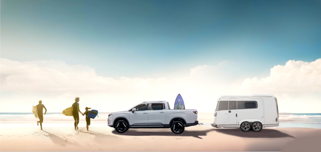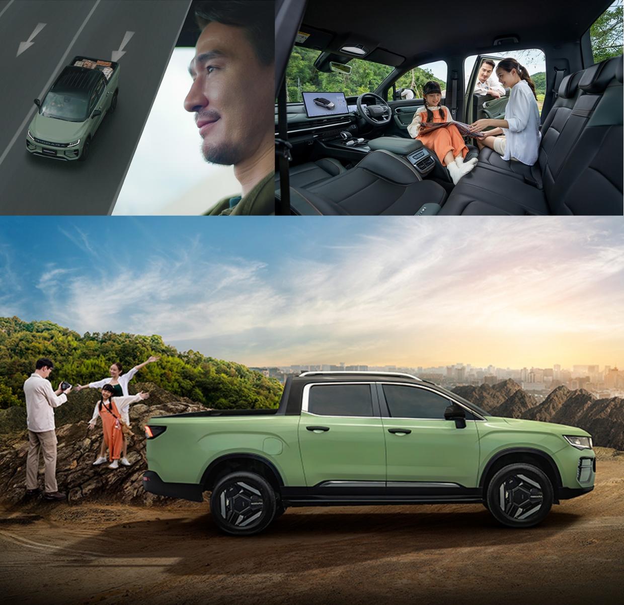 ควบคุมระยะไกลผ่านแอปพลิเคชัน แท่นชาร์จมือถือแบบไร้สาย 50 W และไฟส่องกระบะท้าย ยกเว้น รุ่น 2WD 63 kWh
