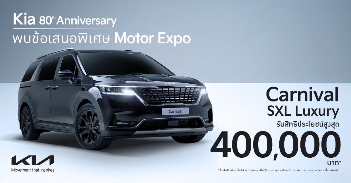 ข้อเสนอที่เป็นไฮไลท์สำหรับ The Kia Carnival คือ การนำเสนอราคาพิเศษให้แก่ The Kia Carnival EX (เธอะ เกีย คาร์นิวัล อีเอกซ์) ในราคา 1,999,000 บาท และ The Kia Carnival SXL Luxury (เธอะ เกีย คาร์นิวัล เอสเอกซ์แอล ลักชัวรี) ที่มอบสิทธิประโยชน์สูงสุด 400,000 บาท โดยทุกรุ่นมาพร้อมกับโปรโมชัน รับประกันคุณภาพยาวนาน 5 ปี บริการช่วยเหลือฉุกเฉิน ระยะเวลา 5 ปี และ The Kia EV5 Air (เธอะ เกีย อีวี 5 แอร์) ที่มอบสิทธิประโยชน์สูงสุด 200,000 บาท โดยสามารถเลือกผ่อนเริ่มต้นเพียง 15,526 บาท/เดือน* หรือเลือกรับเป็น Trade-in 100,000 บาท และลูก ค้า The Kia EV5 ทุกรุ่นจะได้รับการรับประกันคุณภาพยาวนาน 7 ปี บริการช่วยเหลือฉุกเฉิน ระยะเวลา 7 ปี การรับประกันแบทเตอรีรถยนต์ (High-Voltage Battery) 8 ปี ฟรี ประกันภัยชั้น 1 พร้อม พรบ. เป็นระยะเวลา 1 ปี และฟรี Kia Home Charger 1 ชุด พร้อมติดตั้ง และพิเศษเพิ่มเติมสำหรับ เกีย เซลส์ (ประเทศไทย)ฯ