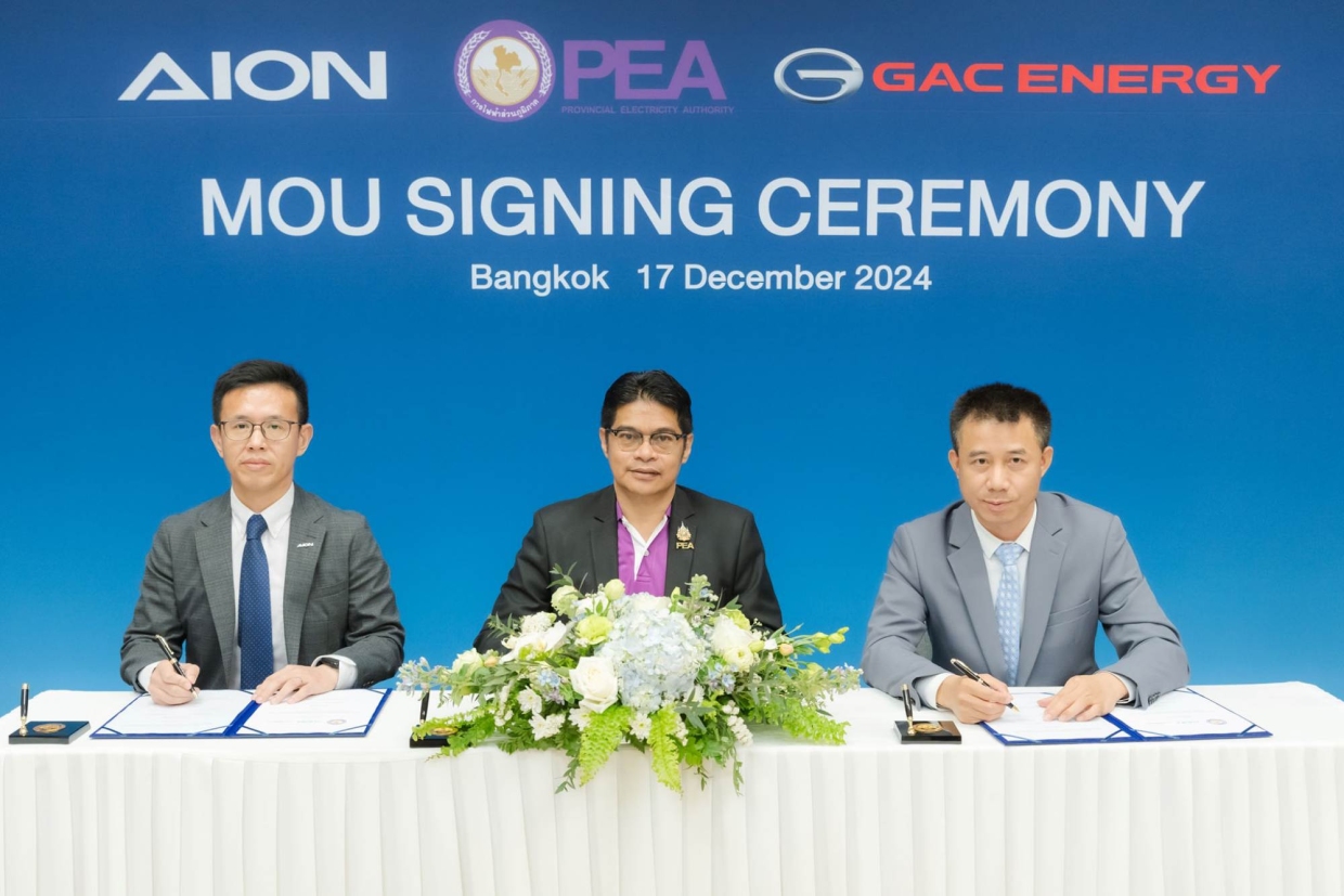 บริษัท ไอออน ออโตโมบิล เซลส์ (ประเทศไทย) จำกัด (Aion Thailand) ผู้นำด้านยานยนต์ไฟฟ้าระดับโลก ร่วมกับการไฟฟ้าส่วนภูมิภาค (PEA) และบริษัท จีเอซี เอนเนอร์ยี่ เทคโนโลยี (ประเทศ ไทย) จำกัด (GAC Energy) ลงนามบันทึกข้อตกลงความร่วมมือ (MOU) เพื่อสนับสนุนการพัฒนาโครงสร้างพื้นฐาน และเทคโนโลยีสำหรับยานยนต์ไฟฟ้า (EV) ในประเทศไทย โดยมีเป้าหมายเพื่อสร้างอนาคตที่ยั่งยืน และลดการปล่อยแกสเรือนกระจก ในการศึกษาระบบเชื่อมต่อ และความเข้ากันได้ระหว่างเครื่องอัดประจุไฟฟ้าของ GAC Energy กับ PEA Volta เพื่อพัฒนาโครงข่ายสถานีชาร์จรถยนต์ไฟฟ้าในประเทศไทย