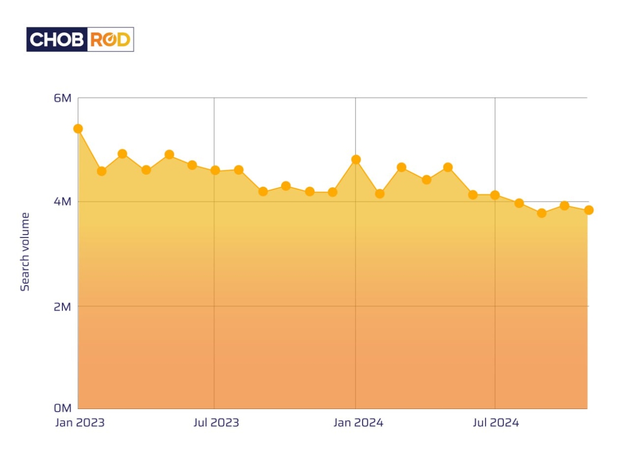 ในปี 2566 ความต้องการรถยนต์มือสองลดลงอย่างต่อเนื่องติดต่อกันเป็นเวลา 12 เดือน เมื่อเข้าสู่ไตรมาสแรกของปี 2567 มีการค้นหาเนื้อหาเกี่ยวกับรถมือสองเริ่มเพิ่มขึ้นอีกครั้ง โดยเฉพาะในเดือนมกราคม 2567 ซึ่งมีจำนวนการค้นหามากกว่า 4.8 ล้านครั้ง แต่ตั้งแต่เดือนพฤษภาคมเป็นต้นไป ความสนใจในรถยนต์มือสองค่อยๆ ลดลง จนถึงสิ้นปี 2567 นั่นเป็นผลมาจากการเข้มงวดของนโยบายสินเชื่อจากสถาบันการเงินทำให้ผู้ซื้อมีความยากลำบากในการเข้าถึงแหล่งเงินกู้ ผู้บริโภคจึงหันมาใช้เงินสดมากขึ้น ซึ่งเพิ่มขึ้นเกือบ 30 %