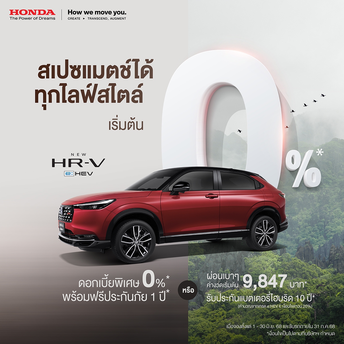 มอบประสบการณ์การใช้รถยนต์ Honda ฟูลไฮบริด e:HEV ได้อย่างมั่นใจ ขับสบายไร้กังวลทุกเส้นทาง โดยรถ Honda e:HEV ทุกรุ่น มาพร้อมการรับประกันแบตเตอรี่ไฮบริด 10 ปี และรับประกันระบบไฮบริดทั้งระบบ 5 ปี ไม่จำกัดระยะทาง อีกทั้งบริการหลังการขายภายใต้มาตรฐานเดียวกันโดยช่างผู้เชี่ยวชาญ พร้อมเครือข่ายผู้จำหน่ายและศูนย์บริการที่ได้มาตรฐาน ครอบคลุมทั่วประเทศกว่า 222 แห่ง เป็นเจ้าของรถ Honda คันที่ชอบ เลือกออกรถกับPromotionที่ใช่ในสไตล์คุณได้แล้ววันนี้ที่โชว์รูม Honda ทั่วประเทศ สอบถามข้อมูลเพิ่มเติมได้จากที่ปรึกษาการขาย หรือแชตกับที่ปรึกษาการขายทางออนไลน์ผ่านเวบไซต์ www.honda.co.th หรือติดต่อศูนย์บริการข้อมูล Honda 24 ชั่วโมง โทร 0-2341-7777