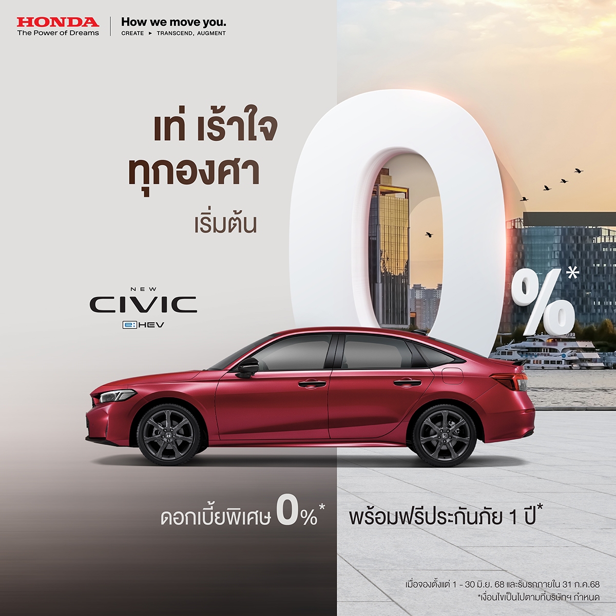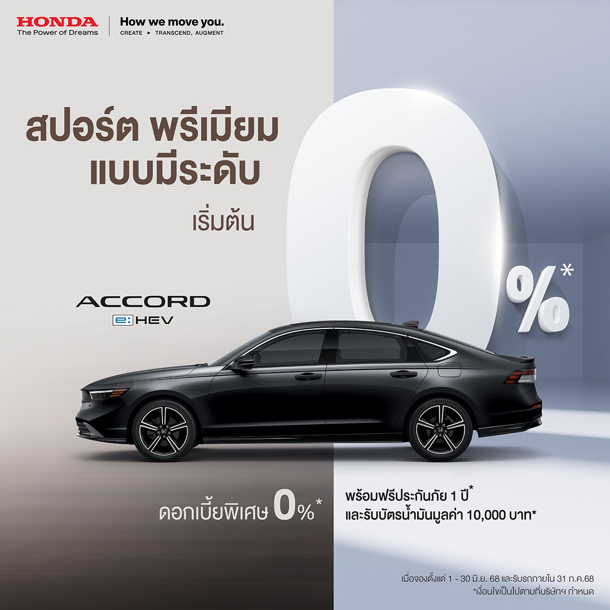 *เงื่อนไขเป็นไปตามที่บริษัท Honda ออโตโมบิล (ประเทศไทย) จำกัด กำหนด สามารถสอบถามรายละเอียดเพิ่มเติมกับที่ปรึกษาการขายโชว์รูมHondaทั่วประเทศ