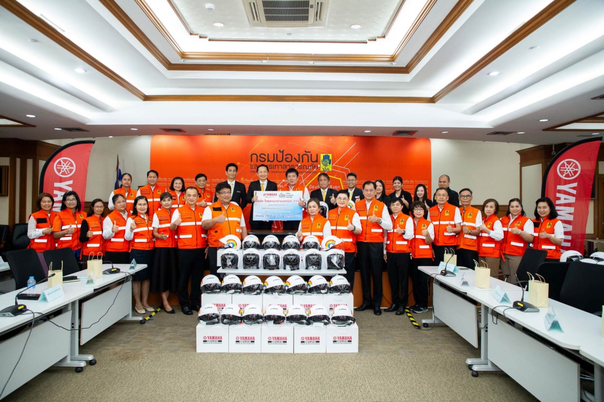 กรมป้องกันและบรรเทาสาธารณภัย (ปภ.) ส่งต่อหมวกนิรภัยขนาดเล็กที่ได้รับมาตรฐาน มอก. จาก บริษัท ไทยยามาฮ่ามอเตอร์ จำกัด จำนวน 100 ใบ ในโอกาสฉลองครบรอบ 60 ปี ที่บริษัทฯ ดำเนินธุรกิจผลิต และจำหน่ายรถจักรยานยนต์คุณภาพระดับโลกในประเทศไทย โดยมอบให้แก่กรมส่งเสริมการปกครองท้องถิ่น ในการจัดกิจกรรมส่งเสริมสร้างวัฒนธรรมความปลอดภัยในการสวมหมวกนิรภัย 100 % ซึ่งได้นำไปมอบส่งต่อให้แก่เด็ก และเยาวชนที่ผู้ปกครองใช้รถจักรยานยนต์ในการรับส่งบุตร หลาน ที่ศูนย์พัฒนาเด็กเล็ก ที่ขาดแคลน และไม่มีหมวกนิรภัยให้แก่บุตรหลาน
