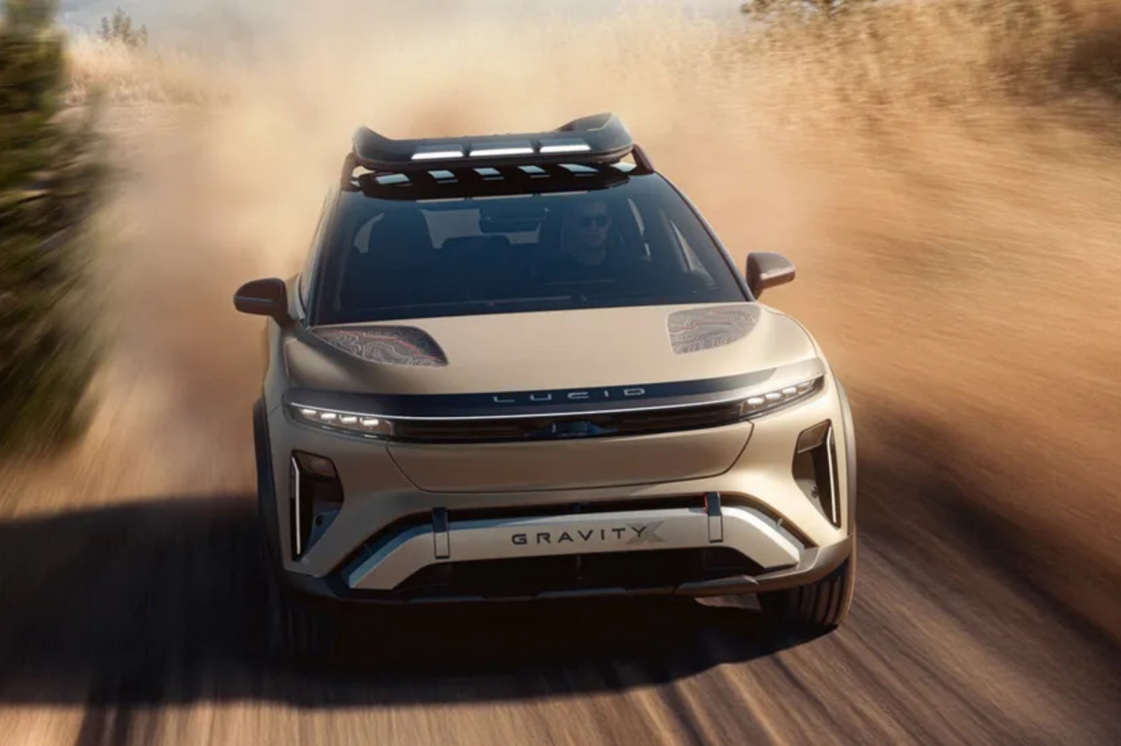 ข่าวจากประเทศอังกฤษ ระบุว่า Lucid Gravity เกรด Grand Touring ตัวรถมาตรฐานสามารถทำระยะเดินทางต่อการชาร์จได้ถึง 450 ไมล์/724 กม. (มาตรฐาน EPA) เมื่อบริษัทต้องการใช้จุดเด่นด้านระยะเดินทางที่ไกลมาก แล้วนำออกจากทางเรียบไปสู่ทางฝุ่นบ้าง จึงเป็นที่มาของรถแนวคิด Gravity X ที่มาในแนวคิดรถพร้อมผจญภัยในเส้นทางทุรกันดาร โดยอัพเกรดตัวรถ ทั้งการเสริมความแข็งแกร่งเพื่อสามารถรองรับความสมบุกสมบันมากขึ้น แต่ขับเคลื่อนได้อย่างไร้เสียง ไม่สร้างมลพิษทางเสียงให้สภาพแวดล้อม ทั้งคงสมรรถนะการเดินทางบนไฮเวย์ จากขุมพลังไฟฟ้า ให้กำลัง 596 กิโลวัตต์/800 แรงม้า
