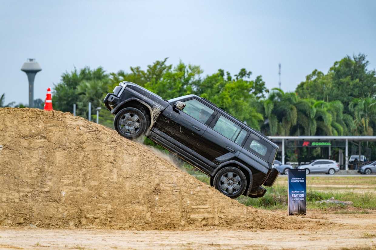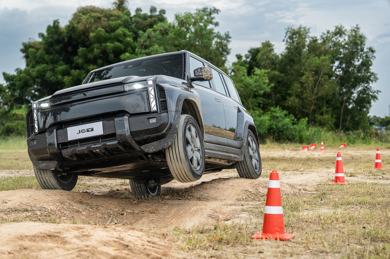 จุดท้าทายของการทดลองขับ Jaecoo 6T EV คือ การฝ่าด่านทางลุยแบบสมบุกสมบันหลากหลายรูปแบบ พละกำลังของมอเตอร์ทั้ง 2 ชุด สามารถพารถยนต์ไฟฟ้าคันนี้ผ่านอุปสรรคได้อย่างยอดเยี่ยม ภายใต้การเลือกโหมดการขับขี่ที่เหมาะสม ไม่ว่าจะเป็นการปรับเปลี่ยนการส่งกำลังอัตโนมัติ การแล่นบนพื้นโคลน การแล่นบนพื้นลื่น และการแล่นบนพื้นทราย เราพบว่าแต่ละโหมดสามารถสร้างความแตกต่างได้จริง การแล่นผ่านทางวิบากในแต่ละสถานีทำได้ง่ายดายเกินคาด เพียงการกดคันเร่งให้คงที่เท่านั้น รวมถึงการแล่นขึ้นเนินชันระดับ 55 % หรือประมาณ 29 องศา สามารถทำได้สบายๆ บ่งบอกประสิทธิภาพการลุยทางสมบุกสมบันที่ดีเกินคาดของรถยนต์ไฟฟ้ารุ่นนี้