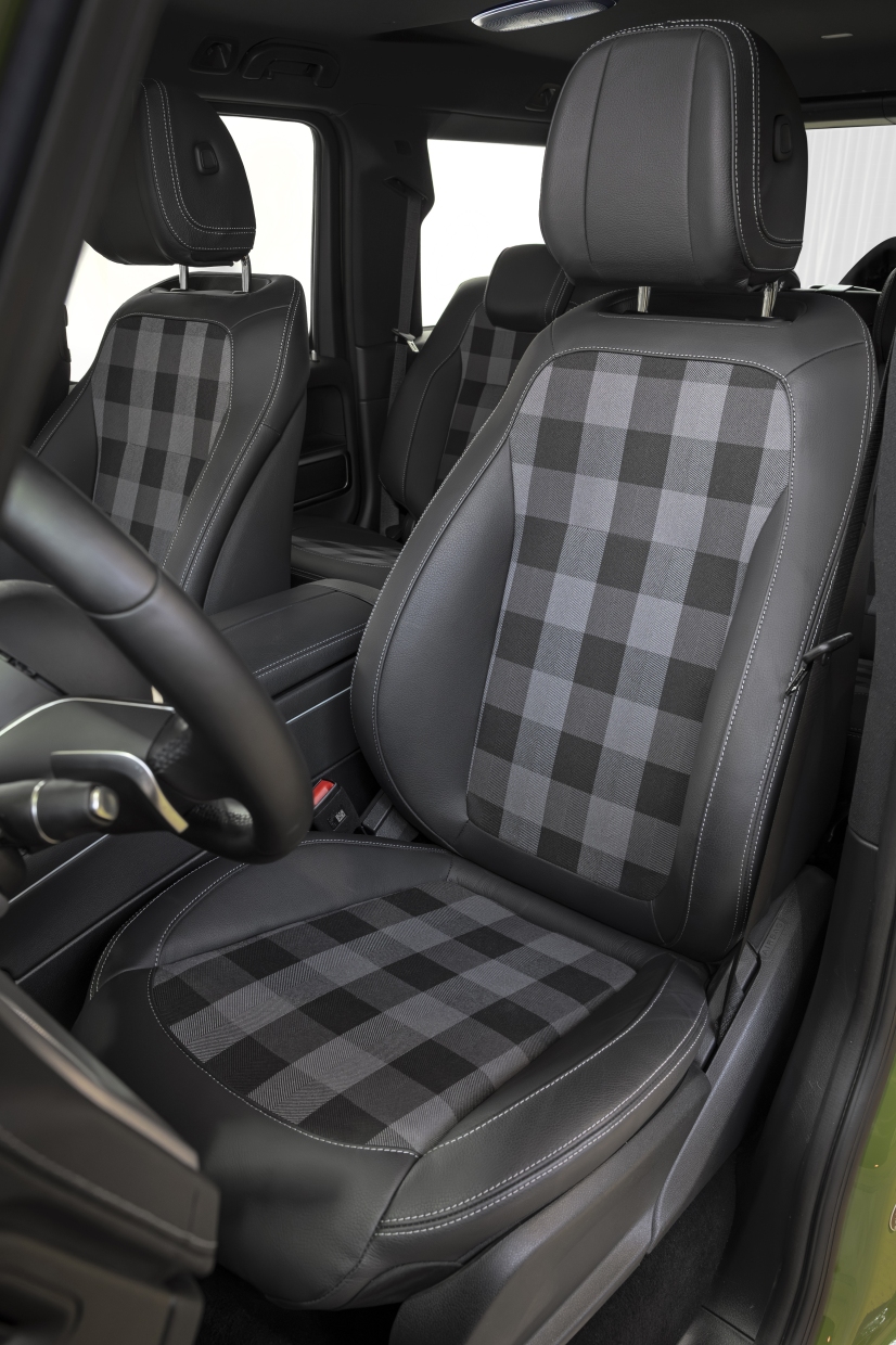 แต่ละทางเลือกมาพร้อมดีไซจ์นที่สะท้อนความแข็งแกร่งเหนือกาลเวลา โดยติดตั้งยางกันโคลนบริเวณล้อแบบ Professional front and rear mud flaps และล้อขนาด 18 นิ้วแบบ 5-spoke light-alloy พร้อมยาง All-terrain tyres เพิ่มความดุดันด้วยดีไซจ์นภายนอกแบบ Edition-specific ครอบคลุมทั้งกระจังหน้า ชุดครอบกระจังหน้ำ ชุดครอบไฟหน้า กันชนหน้า-หลัง ซุ้มล้อ และกระจกมองข้างที่ตกแต่งด้วยสีดำ Night Black Magno พร้อมไฟเลี้ยวคู่หน้าสีส้มสุดคลาสสิค โลโก้บนฝากระโปรงหน้าดีไซจ์น Mercedes-Benz star in historic design และประตูท้ายตกแต่งด้วยโลโก Mercedes-Benz Badge แบบ Classic รวมถึงชุดครอบยางอะไหล่ Stronger Than The 1980s ชุดตราสัญลักษณ์ Manufaktur logo package ปุ่มเปิดประตูแบบ Manufaktur doorknob with embossed logo และส่องสว่างบริเวณด้านข้างตัวรถด้วย Manufaktur logo projector พร้อมตราสัญลักษณ์ G-Stronger Than Time