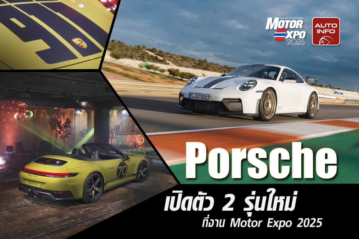 Porsche ประเทศไทย เปิดตัว 2 รุ่นระดับตำนานอย่าง 911 Spirit 70 ซึ่งเป็นรุ่นที่ 3 ในตระกูล Heritage Design ที่สะท้อนกลิ่นอายยุค 1970 ผสานสมรรถนะไฮบริดอันทันสมัย และ 911 GT3 รุ่นใหม่ ที่เฉลิมฉลอง 25 ปีของตระกูล GT3 ด้วยแอโรไดนามิคที่เหนือระดับ พร้อมพละกำลังที่เฉียบคม และยกระดับความแม่นยำในการขับขี่ โดยจัดแสดงยนตรกรรมภายใต้แนวคิด “There is no Substitute” พร้อมถ่ายทอดจิตวิญญาณของ Porsche ผ่าน 4 มิติสำคัญ ได้แก่ Motorsport, Adventure, Urban และ Heritage และมอบข้อเสนอพิเศษสำหรับหลากหลายรุ่น ในงาน “Thailand International Motor Expo 2025” (มหกรรมยานยนต์ ครั้งที่ 42) ณ บูธ A03 IMPACT ชาลเลนเจอร์ เมืองทองธานี ตั้งแต่วันที่ 29 พฤศจิกายน-10 ธันวาคม 2568