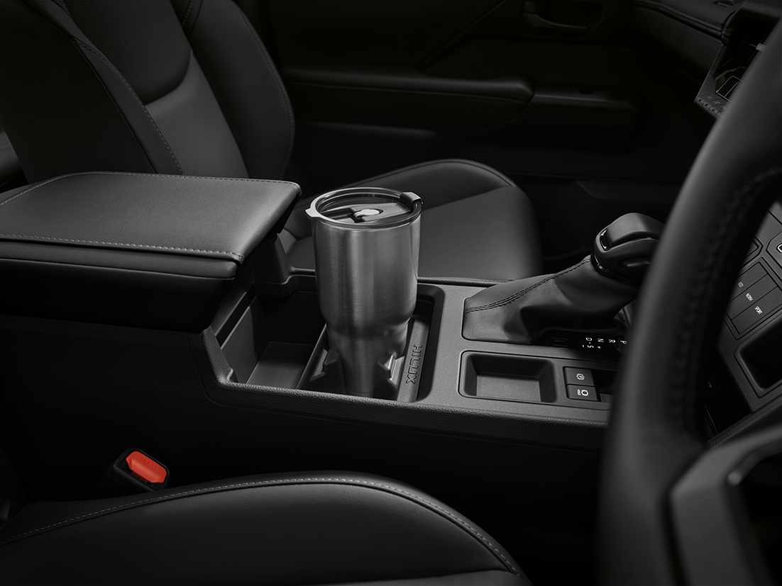 ที่วางแก้วน้ำขนาดใหญ่ และที่พักแขนช่วยลดความเหนื่อยล้าขณะขับขี่