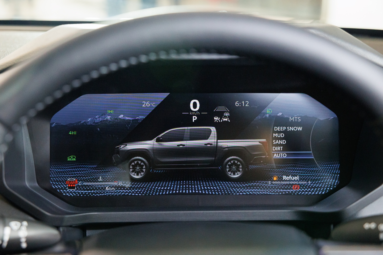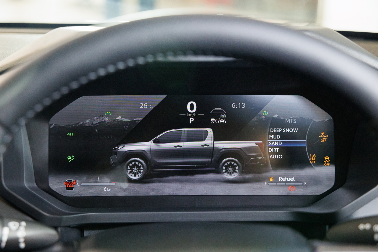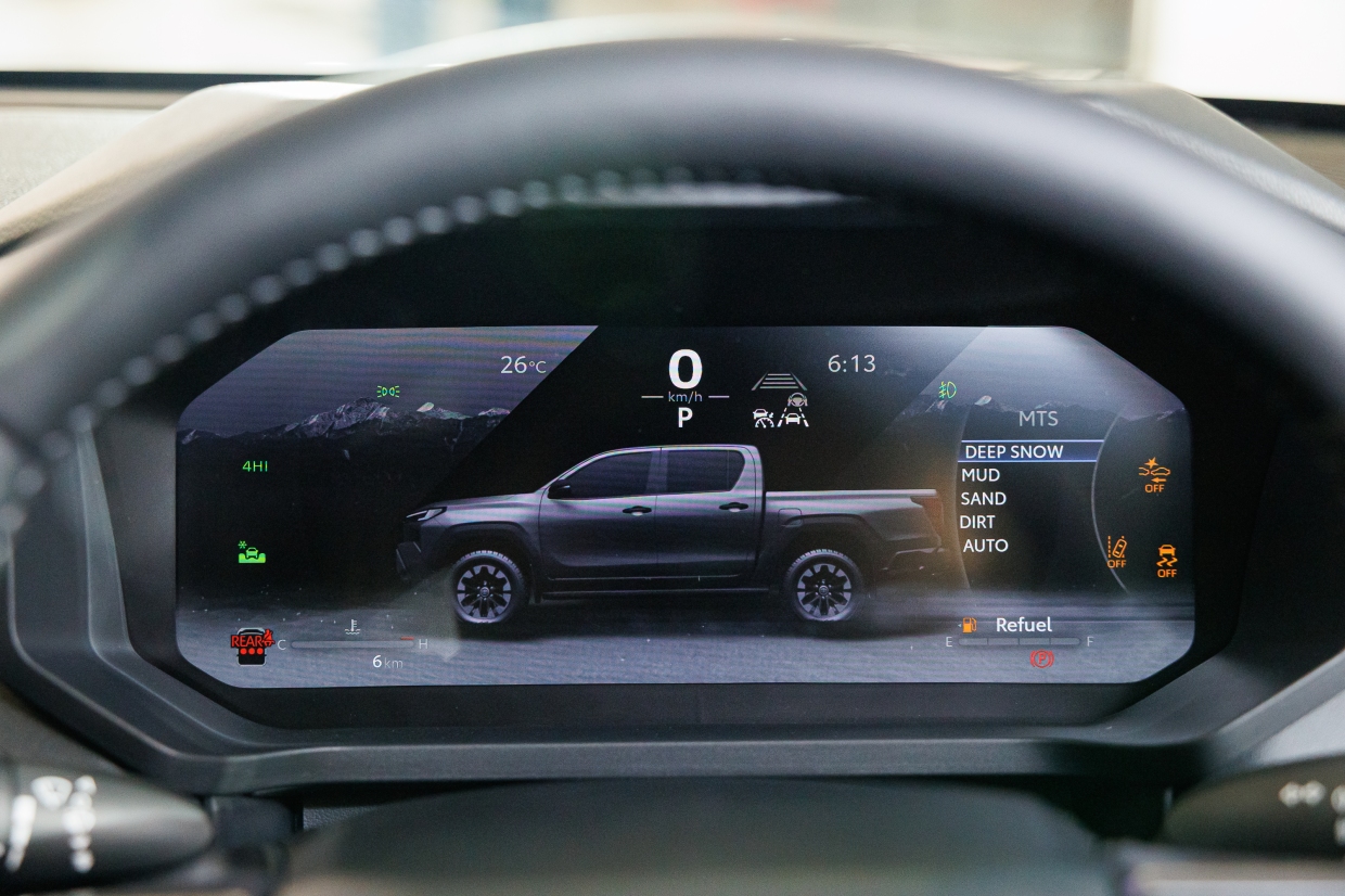 Hilux Travo Double Cab 4TREX 2.8 Overland Plus AT มีทั้งระบบ Multi-terrain Select (MTS) ช่วยปรับการขับขี่ให้เหมาะสมกับสภาพพื้นผิวที่หลากหลาย ทั้งแบบ ดิน ทราย โคลน หิน หรือ หิมะ ในรุ่น 4TREX และระบบควบคุมเฟืองท้าย (Auto Limited Slip Differential) ทุกอย่างใช้งานง่าย