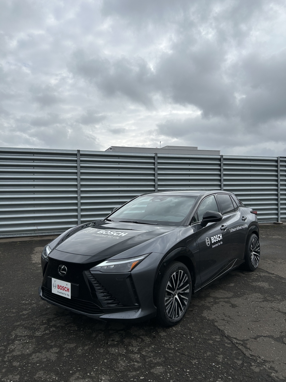ก่อนเริ่มต้นการทดลองขับในสถานี ทางผู้จัดงาน นั่นคือ Bosch จะให้เราทำแบบสอบถามของพฤติกรรมการขับขี่โดยรวม (แบบสอบถามดิจิทอลบนแทบเลท) เมื่อทำแบบสอบถาม และถ่ายรูปหน้าตรงของเราแล้ว เจ้าหน้าที่จะนำข้อมูลดังกล่าวไปป้อนให้กับระบบ Software defined vehicle motion ในรถยนต์ไฟฟ้า Lexus RZ (ติดตั้งเพื่อการทดลองขับโดยเฉพาะ) เมื่อเราขึ้นมาบนรถ และเปิดระบบดังกล่าว ตัวรถจะสแกนใบหน้าของเรา รวมถึงประมวลผลข้อมูลจากแบบสอบถามที่ทำเอาไว้ล่วงหน้า จากนั้นจะปรับแต่งการตอบสนองของตัวรถให้ตรงกับลักษณะการขับขี่ของเรา เช่น หากข้อมูลพบว่า ผู้ขับชอบการขับขี่แบบนุ่มนวล ระบบจะปรับระบบรองรับให้ตอบสนองอย่างเหมาะสม รวมถึงพวงมาลัยให้ตอบสนองแบบเน้นความต่อเนื่องมั่นคง