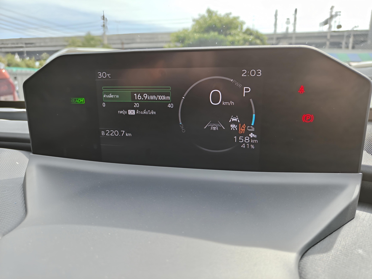 จากการทดลองขับบนสภาพถนนจริงจากหัวหินถึง Toyota Alive บางนา 220 กม. ยังเหลือระยะทางที่ยังไปต่อได้อีก 158 กม. กับปริมาณไฟในแบทเตอรีที่เหลือ 41 % โดยมีอัตราการใช้ไฟอยู่ที่ 16.9 kWh/100 กม. เป็นตัวเลขไม่ได้เกินคาด แต่ก็มีค่าไฟที่ประหยัดกว่าค่าน้ำมัน ขณะที่อัตราเร่งทันใจ ขับสนุกกว่า