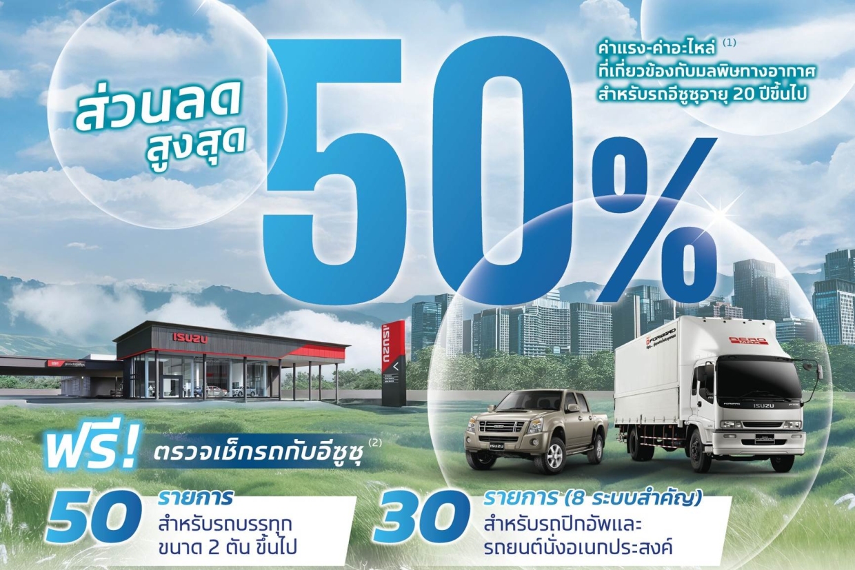 Isuzu (อีซูซุ) ร่วมกับ กรมควบคุมมลพิษ กระทรวงทรัพยากรธรรมชาติและสิ่งแวดล้อมเชิญชวนลูกค้านำรถ Isuzu ทุกประเภทที่มีอายุการใช้มากกว่า 15 ปี เข้ารับบริการตรวจเชคสภาพรถฟรีที่ศูนย์บริการมาตรฐาน Isuzu ทั่วประเทศ ภายใต้แคมเปญ “ดูแลรถเก่า..เพื่ออากาศสดใส” เพื่อบรรเทาปัญหามลพิษทางอากาศจากยานพาหนะที่ใช้งานมายาวนาน และขาดการบำรุงรักษาอย่างเหมาะสม ระหว่างวันที่ 1 ธันวาคม 2568-28 กุมภาพันธ์ 2569