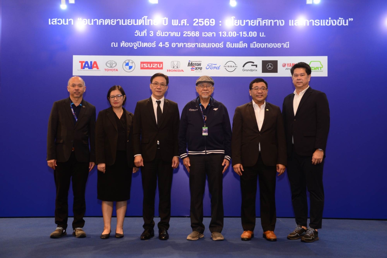 สมาคมผู้สื่อข่าวรถยนต์และรถจักรยานยนต์ไทย (สรยท.) จัดเสวนาในหัวข้อ “อนาคตอุตสาหกรรรมยานยนต์ไทย ปี 2569 : นโยบาย ทิศทาง และการแข่งขัน” โดยมีวิทยากรผู้ทรงคุณวุฒิทั้งภาครัฐ และเอกชน ประกอบด้วย พธู ทองจุล ผู้อำนวยการ กองนโยบายอุตสาหกรรมรายสาขา 1 สำนักงานเศรษฐกิจอุตสาหกรรม (สศอ.) กระทรวงอุตสาหกรรม, สุวัชร์ ศุภกาญจน์เดชากุล นายกสมาคมอุตสาหกรรมยานยนต์ไทย (TAIA) และ รศ.ดร.ยศพงษ์ ลออนวล นายกสมาคมกิตติมศักดิ์ และที่ปรึกษา สมาคมยานยนต์ไฟฟ้าไทย (EVAT) ร่วมฉายภาพความเห็นการแข่งขันของตลาดยานยนต์ในประเทศไทยตั้งแต่ต้นน้ำ กลางน้ำ ปลายน้ำ ที่จะเกิดขึ้นในปี 2569 ภายใต้เงื่อนไขทางภาษีต่างๆ จากภาครัฐที่กำลังจะเปลี่ยนแปลง และมีผลบังคับใช้ 1 มกราคม 2569 โดยมี สุรศักดิ์ จรินทร์ทอง นายกสมาคมผู้สื่อข่าวรถยนต์และรถจักรยานยนต์ไทย (สรยท.) หรือ Thai Automotive Journalists Association (TAJA) กล่าวรายงานถึงวัตถุประสงค์ของการจัดเสวนาในครั้งนี้ต่อ ขวัญชัย ปภัสร์พงษ์ ประธานจัดงาน “มหกรรมยานยนต์ ครั้งที่ 42” ประธานในพิธี, วิทยากร และสื่อมวลชน ณ ห้องจูปิเตอร์ 4-5 อาคารชาลเลนเจอร์ IMPACT เมืองทองธานี