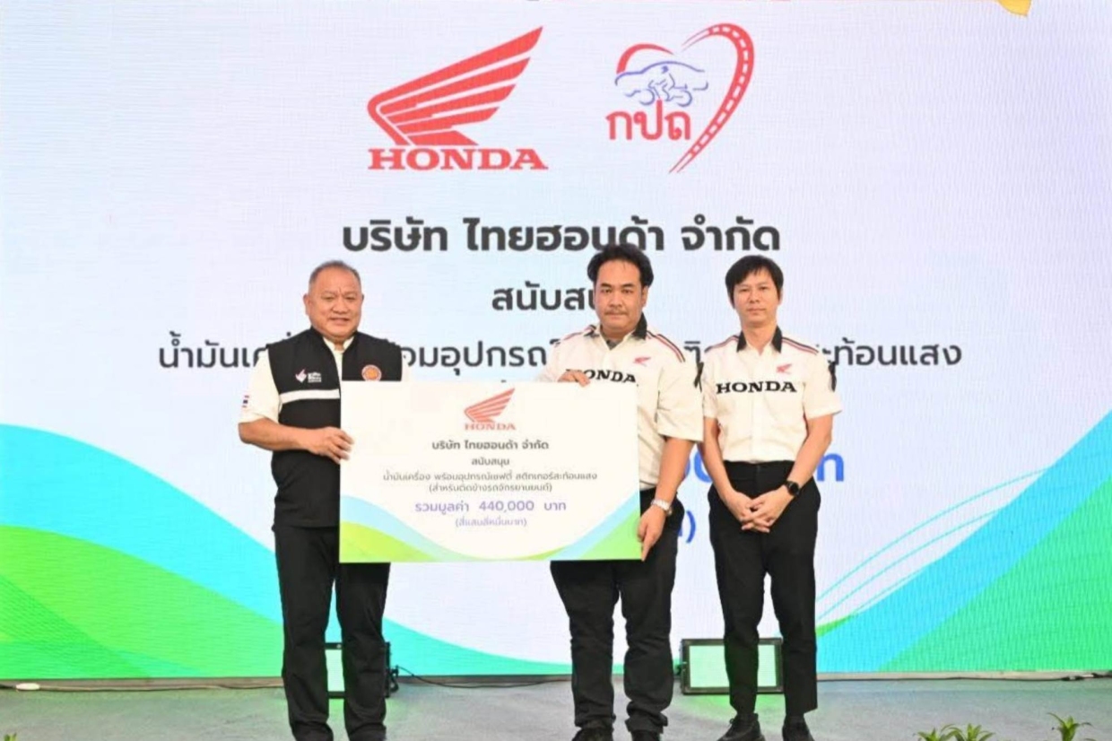 ไทยฮอนด้าฯ ผู้ผลิต และจัดจำหน่ายรถจักรยานยนต์ และเครื่องยนต์อเนกประสงค์ Honda (ฮอนดา) ในประเทศไทย ให้การสนับสนุน สำนักงานคณะกรรมการการอาชีวศึกษา โดยส่งมอบน้ำมันเครื่องสำหรับรถจักรยานยนต์ จำนวน 3,600 ขวด พร้อม Safety Sticker Have a Good Ride สติคเกอร์สะท้อนแสง จำนวน 4,000 ชุด รวมมูลค่า 440,000 บาท เพื่อใช้ในการดำเนินงานโครงการ “อาชีวะ-ขนส่ง อาสาช่วยประชาชน เทศกาลปีใหม่ 2569” จัดขึ้นระหว่างวันที่ 29 ธันวาคม 2568-5 มกราคม 2569 ที่ผ่านมา