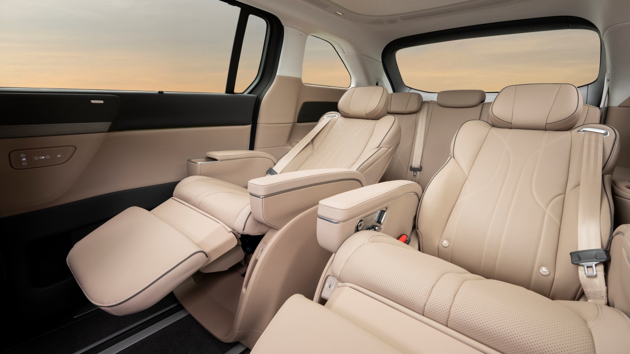 นอกจากนี้ยังเป็นหนึ่งเดียวในคลาสส์ที่เบาะแถว 3 สามารถพับราบด้วยไฟฟ้าเพียงหนึ่งสัมผัส และเทคโนโลยีเลี้ยว 4 ล้อ รัศมีวงเลี้ยวเพียง 5.4 ม. นับว่าเป็นเอมพีวีพลังไฟฟ้าที่คล่องตัวที่สุดเท่าที่เคยมีมา อีกทั้งยังผสานการขับเคลื่อนด้วยเทคโนโลยีแบทเตอรี 800 โวลท์ ที่สามารถชาร์จไฟฟ้าจาก 10-80 % ได้ในเวลาเพียง 20 นาที รองรับการชาร์จแบบ DC สูงสุดถึง 317 กิโลวัตต์ แบทเตอรีขนาด 101.5 กิโลวัตต์ชั่วโมง เมื่อชาร์จเต็มจะมีระยะทำการสูงสุดที่ 690 กม. (มาตรฐาน NEDC) และ 590 กม. สำหรับมาตรฐาน WLTP มอเตอร์ไฟฟ้า กำลังสูงสุด 235 กิโลวัตต์/320 แรงม้า อัตราเร่ง 0-100 กม./ชม. ใน 7.7 วินาที ความเร็วสูงสุด 200 กม./ชม.