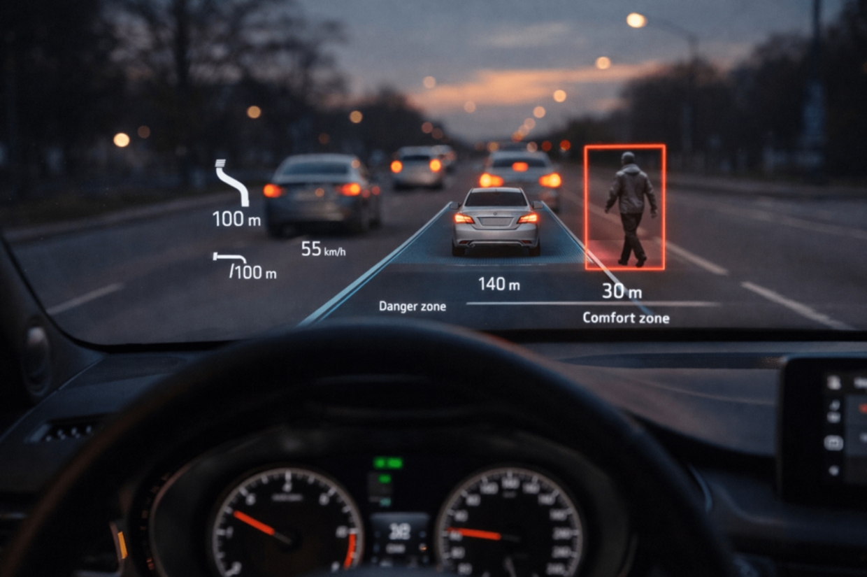 แทนการเตือนคนขับด้วยเสียง หรือไฟกะพริบ ระบบเตือนของ Toyota จะแสดงระยะห่างด้วยภาพที่แสดงถึงความลึก เพื่อนำสายตาไปยังจุดที่ใกล้กว่าโดยอัตโนมัติ โดยไม่ต้องใช้ระบบเตือน