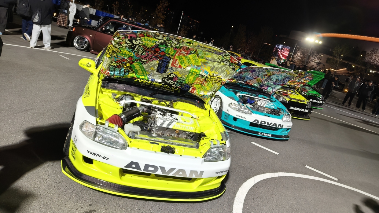 การจัดแสดงจะแยกกลุ่มเป็นหมวดหมู่ในบางโซน เช่น บางโซนจะเน้นรถสปอร์ทของญี่ปุ่น บางโซนเป็นรถสปอร์ทของ Porsche ไม่ว่าจะเป็นรุ่นปกติ หรือการตกแต่งด้วยชุดตกแต่งของ RWB-Rauh Welt Begriff อันโด่งดัง มาพร้อม Influencer ชื่อดังจากประเทศสหรัฐอเมริกานำรถของตัวเองมาจัดแสดงถึงประเทศญี่ปุ่น นอกจากนี้บางโซนยังมีการจัดแสงไฟสำหรับการถ่ายภาพสวยๆ (เริ่มเป็นที่นิยมในงาน Car Meeting หลายที่รวมถึงบ้านเรา)