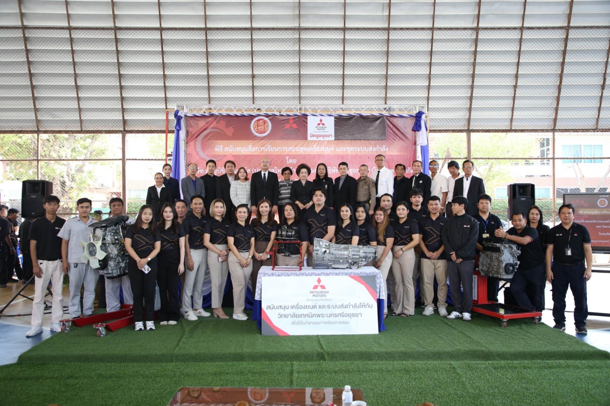 บริษัท มิตซูบิชิ มอเตอร์ส (ประเทศไทย) จำกัด เดินหน้าสนับสนุนการศึกษา และส่งเสริมการพัฒนาทักษะเชิงช่างอย่างต่อเนื่อง เป็นปีที่ 11 ตอกย้ำความมุ่งมั่นของบริษัทฯ ในการยกระดับมาตรฐานการศึกษาของประเทศไทย และส่งเสริมการเรียนรู้โดยผ่านการลงมือปฏิบัติจริง ร่วมกับผู้จำหน่าย บริษัท มิตซูอยุธยา (ไทยธาดา) จำกัด มอบเครื่องยนต์ และชุดส่งกำลัง ให้แก่วิทยาลัยเทคนิคพระนครศรีอยุธยา เพื่อใช้เป็นสื่อการเรียนการสอน มุ่งเปิดโอกาสให้นักศึกษาได้สัมผัสการเรียนรู้เทคโนโลยี และองค์ความรู้ทางเทคนิคที่ทันสมัย อันนำไปสู่การเพิ่มโอกาสสู่ความสำเร็จในสายงานและเป็นรากฐานสำคัญในการเติบโตในอุตสาหกรรมยานยนต์อย่างยั่งยืน
