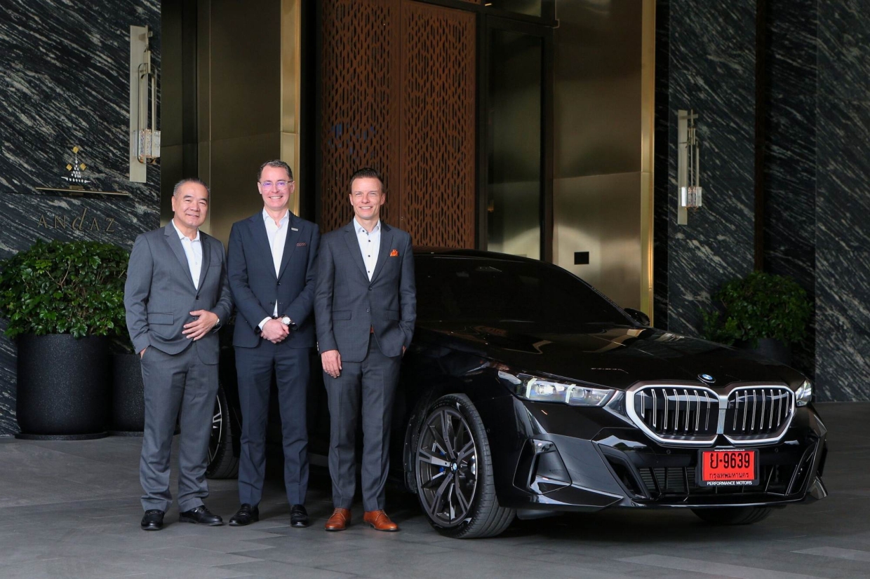 เรเน แกร์ฮาร์ด ประธานและซีอีโอ บีเอ็มดับเบิลยู กรุ๊ป ประเทศไทย พร้อมด้วย ประภัสสร โตวะกุล กรรมการผู้จัดการ บริษัท เบลล์ ทรานสปอร์ต จำกัด ส่งมอบรถยนต์ BMW 520D M Sport ให้แก่ Andaz One Bangkok โดยมี รอสส์ คูเปอร์ ผู้จัดการทั่วไป Andaz One Bangkok เป็นผู้รับมอบ