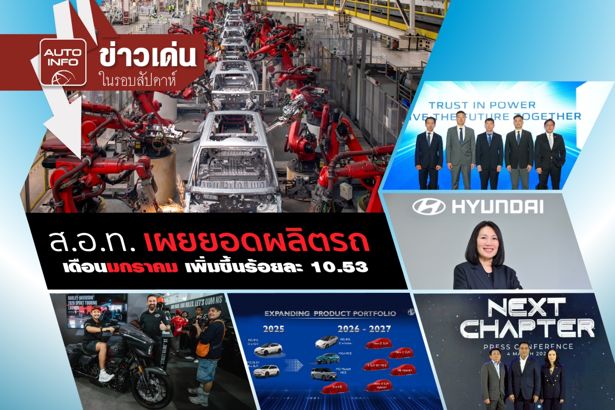 ข่าวเด่นสัปดาห์นี้ เริ่มต้นด้วยดี อุตสาหกรรมยานยนต์ไทย ส่อเค้าดีเริ่มเห็นแววเติบโตตั้งแต่ต้นปี โดยสภาอุตสาหกรรมแห่งประเทศไทย แถลงยอดผลิตดือนมกราคม 2569 ผลิตรถยนต์ 118,386 คัน เพิ่มขึ้นร้อยละ 10.53 พร้อมสาระข่าวแวดวงอุตสาหกรรมยานยนต์ไทยครบถ้วนHighlight
